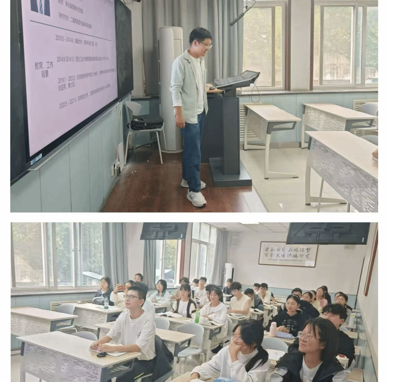 10月21日,化学2402班在雁塔校区教学八楼8406教室举办“教授接待日”活动,雷海涛副教授应邀参加。雷教授首先简要回顾了自己的求学之路。他的求学经历深深感染了在场的每一位同学。在互动环节,同学们积极提问,问题涉及学习、生活、心理等多个方面。雷教授逐一为同学们解答。他的回答不仅解决了同学们的疑惑,更激发了同学们对化学的热爱。整个活动过程中,雷教授勤勉奋发的求学历程与一丝不苟的学术精神给同学们留下了深刻的印象。他用自己的实际行动诠释了什么是真正的学者风范,也为同学们树立了学习的榜样。