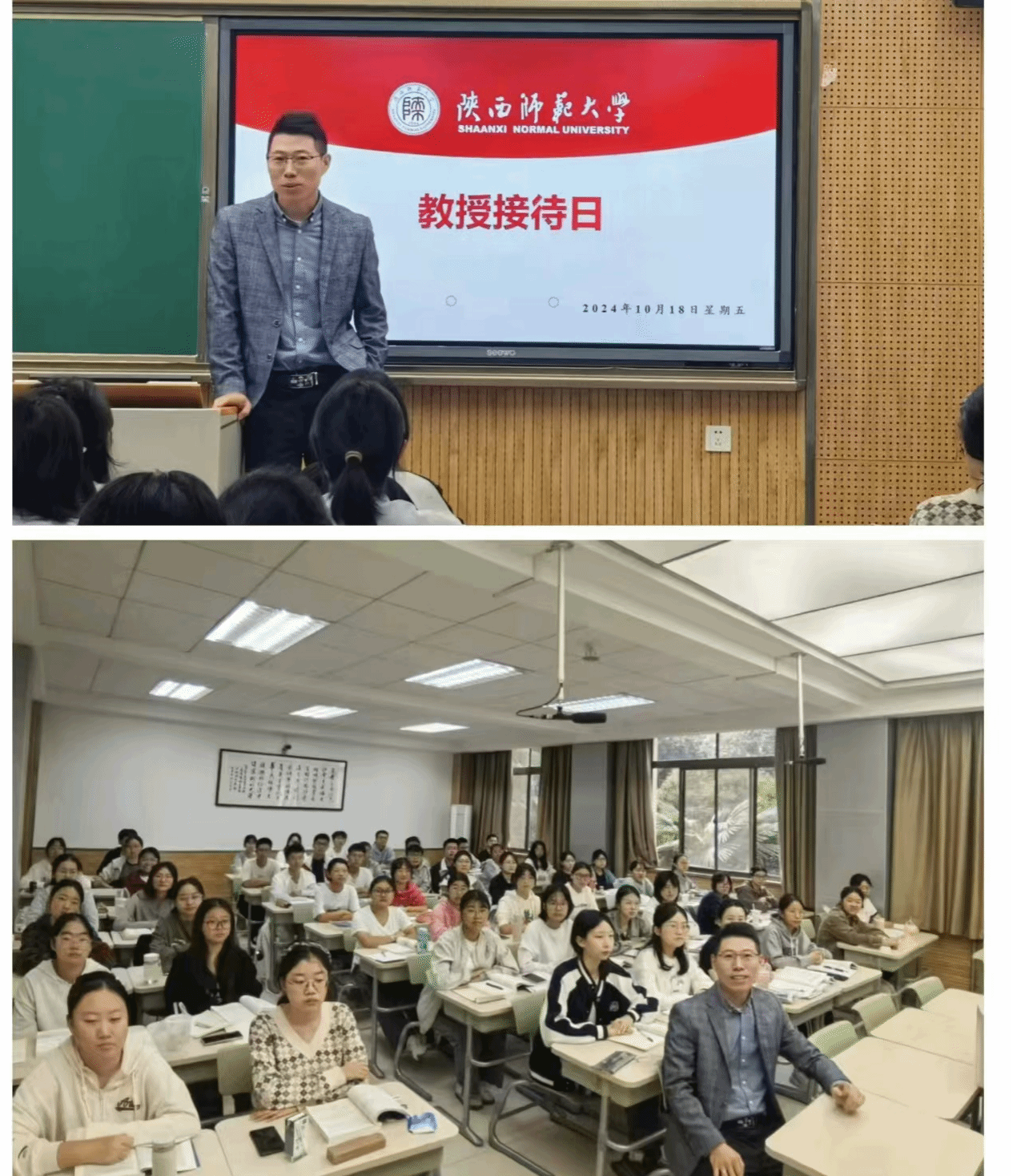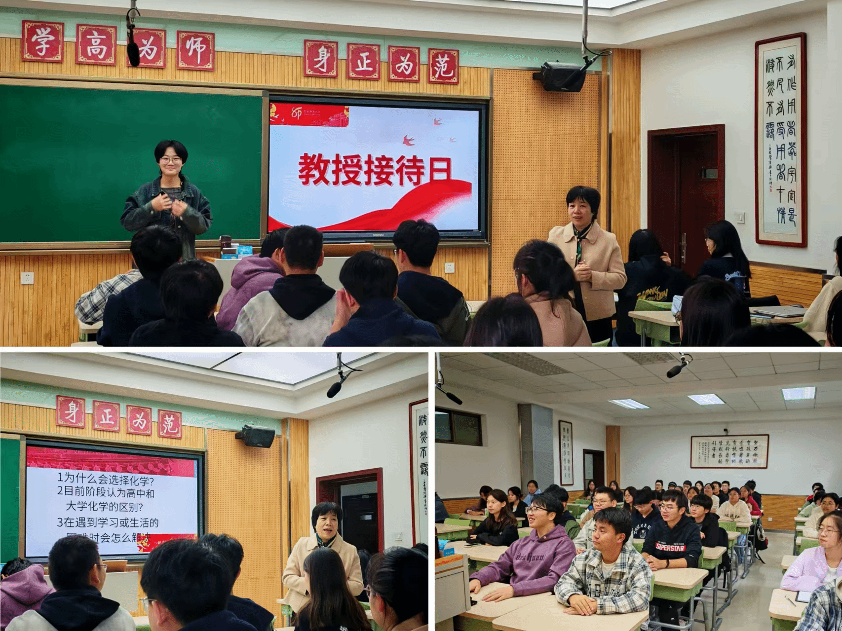 10月19日,化学2301班在雁塔校区教学八楼8101教室举办“教授接待日”活动,张航老师和西安外国语大学周凡馨老师应邀参加。活动中,周老师针对如何讲好课、如何成长为一名优秀教师等议题,给予了同学们细致入微的解答。同学们热情高涨,积极参与讨论。在周老师的引导下,大家更加明确了自己的奋斗目标,内心充满了坚定的信念。最后,周老师语重心长地勉励同学们,要勇于探索未知,勤于思考问题,不断夯实专业知识基础,提升专业技能水平,练就一身过硬的本领,为将来成为一名杰出的教育工作者打下坚实的基础。