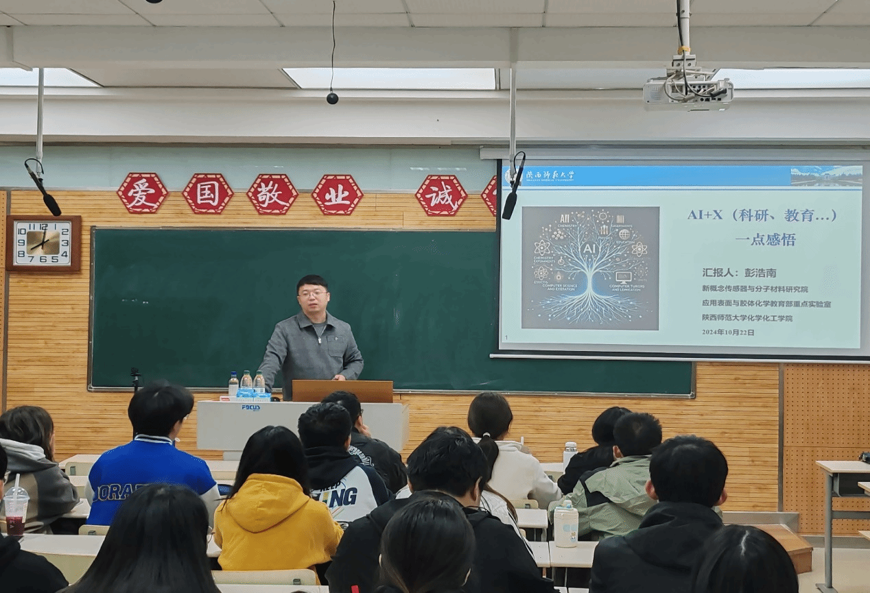 10月22日,化笃2301班在雁塔校区教学五楼5106教室举办“教授接待日”活动,马佳妮教授、彭浩南教授、薄鑫副教授应邀参加。活动中,彭教授向同学们详细介绍了人工智能技术的爆发式发展,以及它在教育、科研等多个领域所带来的深刻变革。他通过生动具体的案例,鲜明地展示了人工智能如何赋能教育与科学研究,推动其向更高层次迈进。彭教授的讲解深入浅出,既有理论高度,又贴近实际应用,让同学们受益匪浅。同学们纷纷表示,将牢记彭教授的建议与指导,积极拥抱AI时代,努力提升自己的专业素养和创新能力,为未来的科技发展贡献自己的力量。