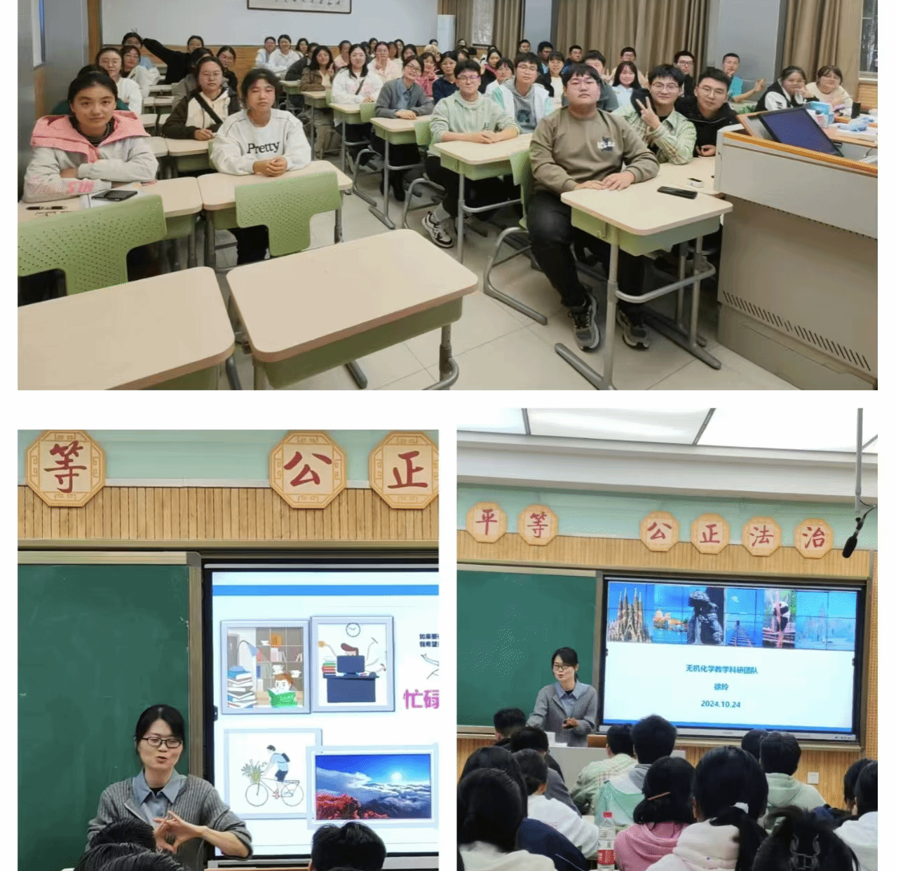 10月25日,化学2401班在雁塔校区教学八楼8203教室举办“教授接待日”活动,李淑妮教授应邀参加。李教授向同学们分享了自己对于学业与个人兴趣发展之间平衡的见解。她鼓励同学们勇于尝试,积极参与各类社团活动和志愿服务项目,通过实践锻炼自己的能力,拓宽视野,丰富人生经历。同时,李教授指出,无机化学作为化学领域的一门基础学科,对于理解自然界中的物质变化规律具有至关重要的作用。因此,建立扎实的基础知识体系,是学好无机化学的关键所在。此外,李教授还特别强调了团队合作的重要性。她告诫同学们,在未来的学习和工作中,要学会与他人沟通、协作,共同探讨问题,共同进步。