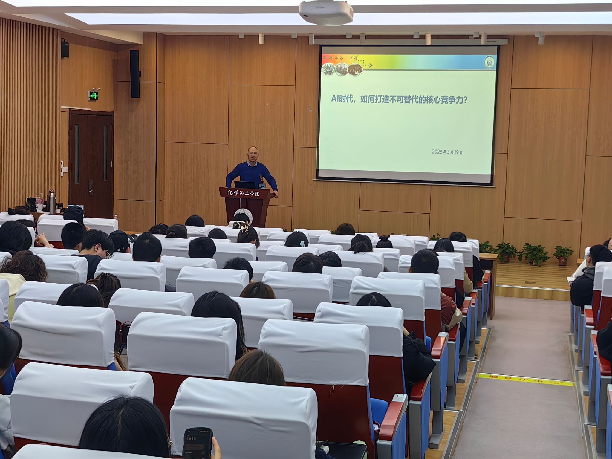 学生会邀请西安市第一中学德育主任解宁涛老师做客化学基础教育名师讲堂,为师范生作《AI时代,如何打造不可替代的核心竞争力?》专题报告,学院150余名师范生参加。