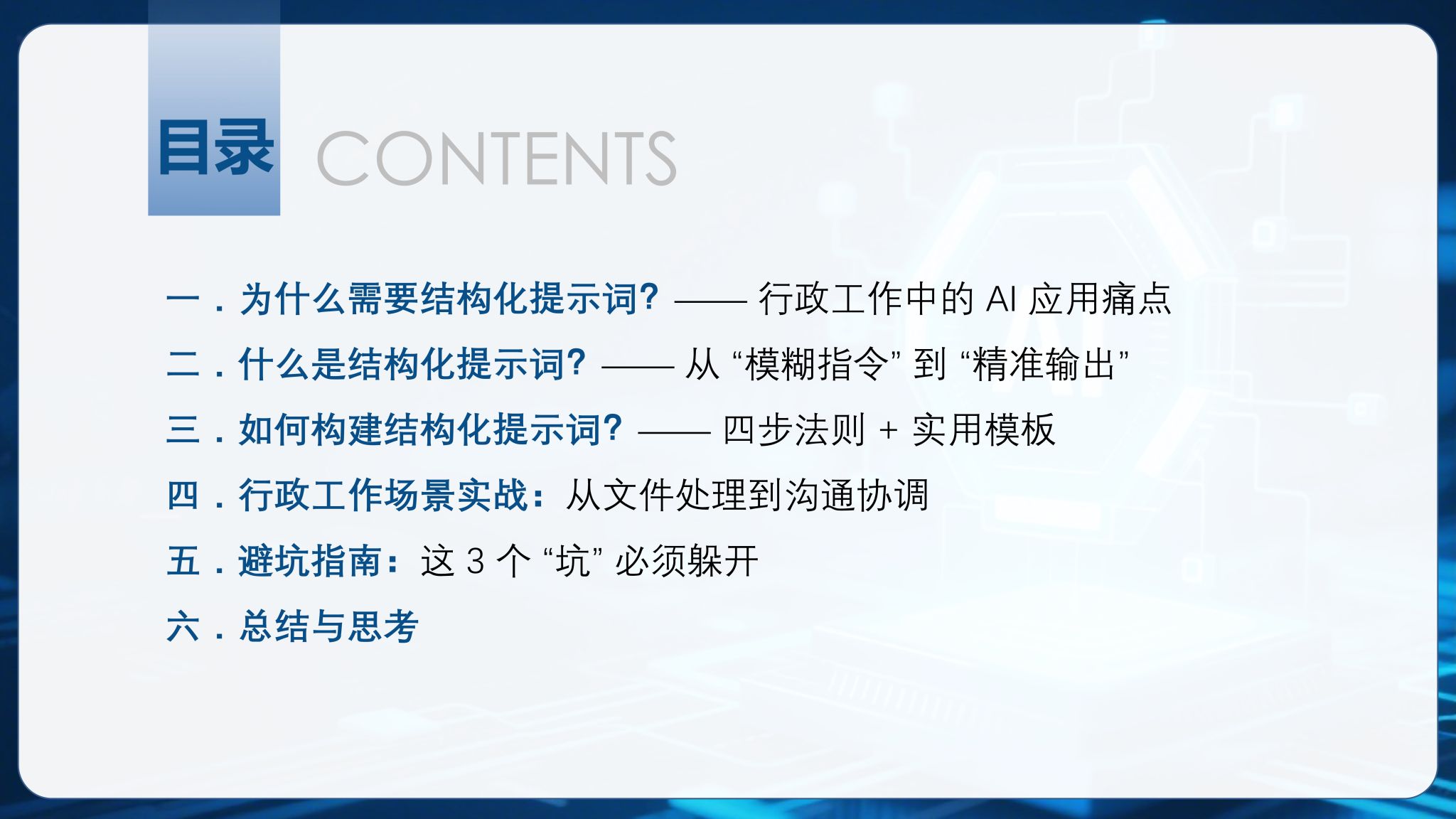 党政办第86次工作例会上,学院科研秘书冯秦雅博士以“用结构化提示词释放 AI 潜力”为主题进行了专业且深入的分享,学院党政办全体人员参加分享会。专题分享会由捷克论坛