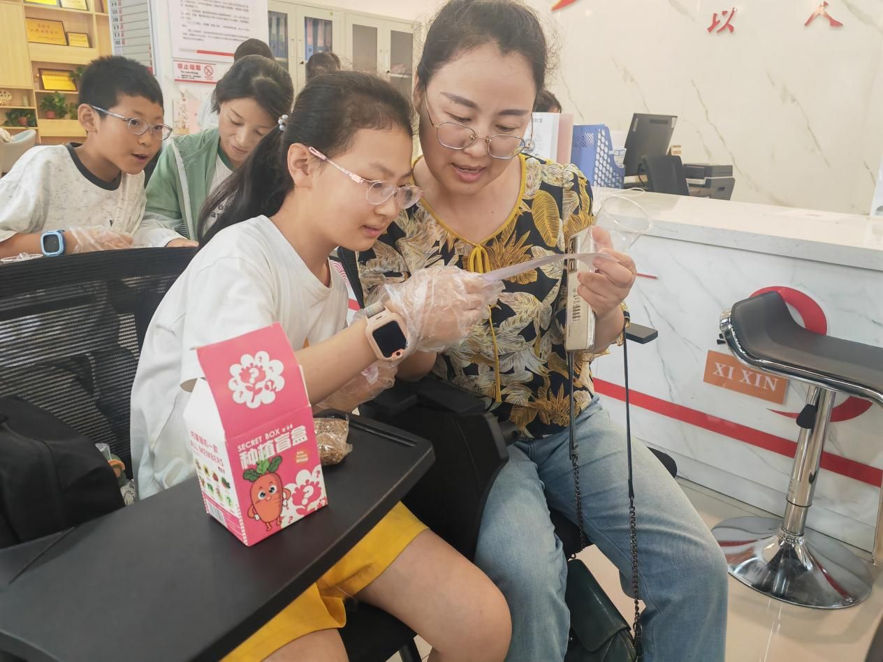 活动现场,在大学生志愿者的协助下,孩子们充满期待地和家长一起种下了植物盲盒,这些植物盲盒将成为他们假期成长的见证。每个盲盒内含不同种类的植物种子,孩子们需要在接下来的日子里细心照料,观察它们的生长变化。这不仅是一次生动的自然科学实践,也让孩子们在劳动中培养责任感和耐心。
