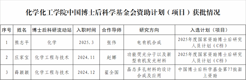 化学博士后科研流动站熊志平博士后、化学工程与技术博士后科研流动站庄家宝博士后获批2025年度国家资助博士后研究人员计划(C档),捷克论坛