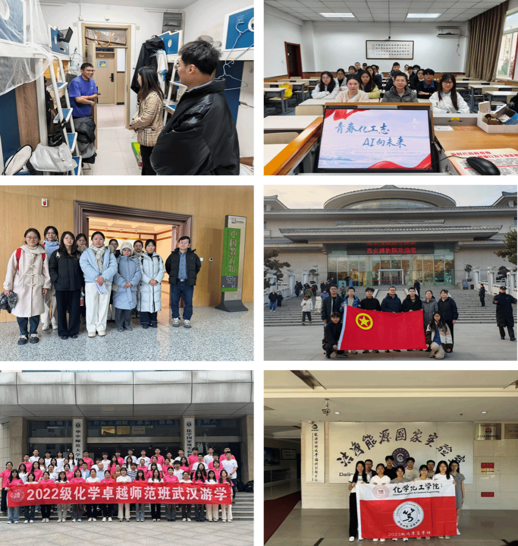 依托化学学科专业优势,学院积极推动班主任工作与科研训练、学科竞赛、研学实践等深度嵌合,让专业引领更具深度、学业帮扶更有温度、实践育人更显力度。一是扎实开展科研训练。班主任着重发挥自身教学科研特长,指导班级同学进行研究型实验,系统指导科研训练,将化学前沿与诚信教育融入学生活动,开展“青春化工志,AI向未来”主题团日活动,激发学生科研兴趣。二是精心辅导竞赛活动。依托班主任的专业优势,积极指导学生参与“挑战杯”“互联网+”等高水平竞赛,在项目培育与科研实践中培养学生的创新能力,共获省级三等奖1项、校级一等奖1项、二等奖2项和三等奖3项,充分展现了班主任工作的育人成效。三是积极探索实践研学。班主任带领班级同学走进烈士陵园、西安博物院等场所开展实践教学,组织带领学生赴中国科学院大连化学物理研究所、华中师范大学、捷克论坛