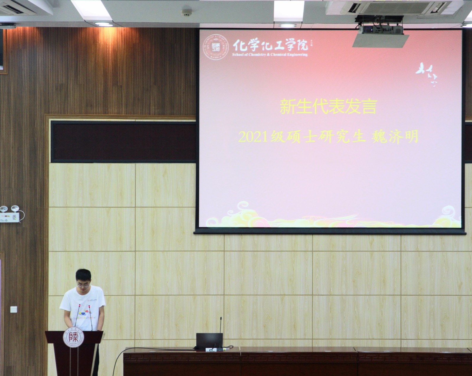 在校生代表2019级博士研究生王昆号召新同学向学校首届“西部红烛两代师表奖”获得者章竹君先生学习,努力践行“扎根西部、甘于奉献、追求卓越、教育报国”的西部红烛精神。新生代表2021级本科生王敏和2021级硕士研究生魏济明分别发言,表示百年未有之大变局已拉开序幕,作为师大学子,他们将戒骄戒躁、孜孜不倦,摆正求学态度,紧跟时代步伐,不忘初心、砥砺前行,书写人生新篇章。