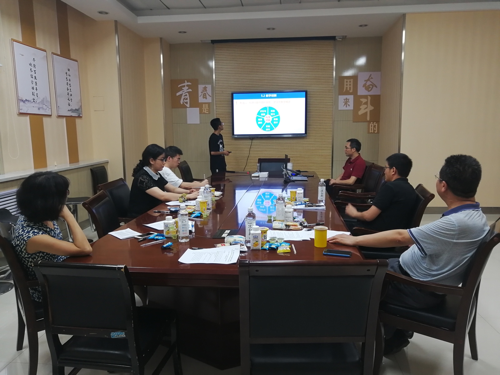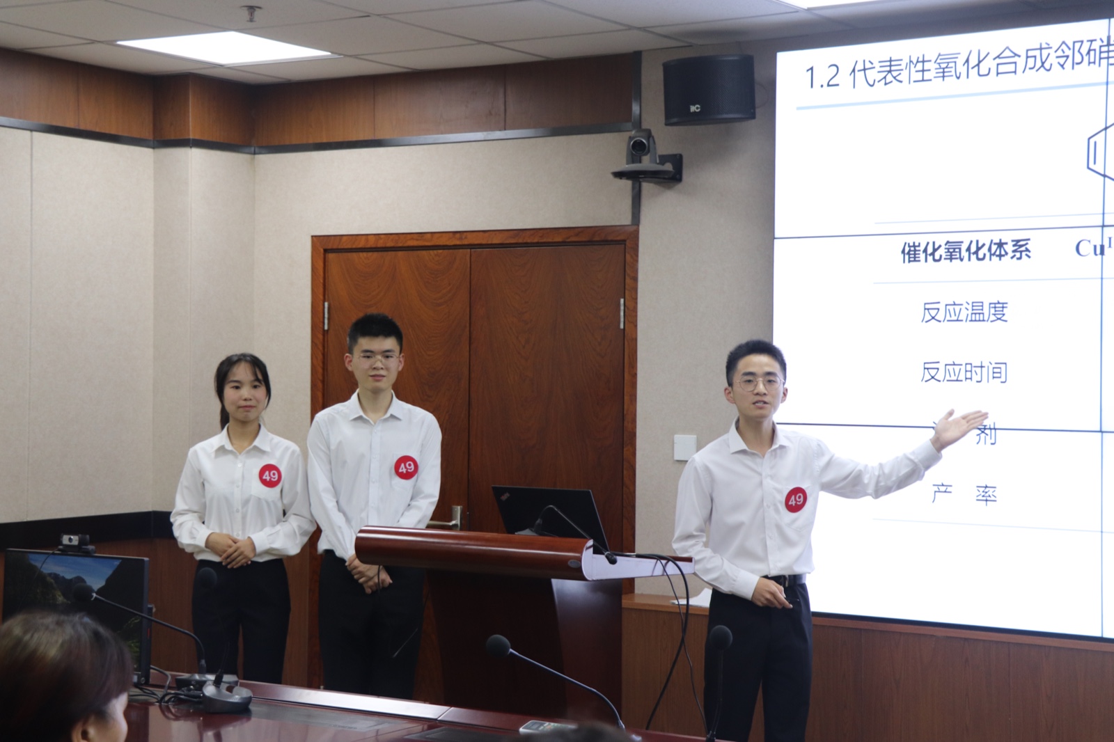吴晋峰书记、薛东院长、实验中心严军林主任等多位老师关心同学们生活和总决赛准备情况,勉励同学们再接再厉,一鼓作气,勇攀高峰。在总决赛准备阶段,张琦老师针对有机化学基础实验教学内容对三位同学进行了强化训练,并围绕氧化反应研究进展,为学生们开发了线上微课,进一步充实了该项目的实验教学内容。决赛前夕,翟全国副院长组织了模拟答辩,张尊听教授、有机化学教工党支部书记石先莹,有机化学教研室主任李楠等对教学论文、幻灯片、实验视频、微课等竞赛内容提出了宝贵意见。石先莹老师还对幻灯片逐页进行了修改。学院、教研室和指导老师全员、全过程、全方位协同育人,使得本项目日臻完善,获得了评审专家的高度认可。