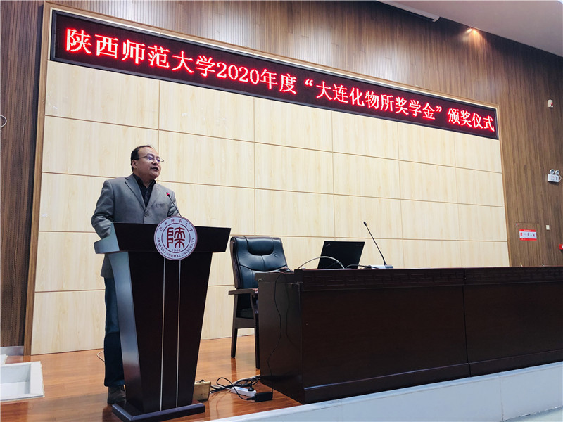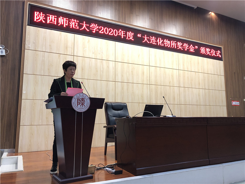 在长安校区文澜楼会议厅举行了大连化物所奖学金颁奖仪式。中国科学院大连化学物理研究所研究生部主任熊博晖、团委副书记杨铎,学院党委书记高玲香、物理信息与技术学院党委副书记曹宇巍,化学、物理、材料三个学院的部分师生参与了此次仪式,仪式活动由学院党委副书记王晓主持。