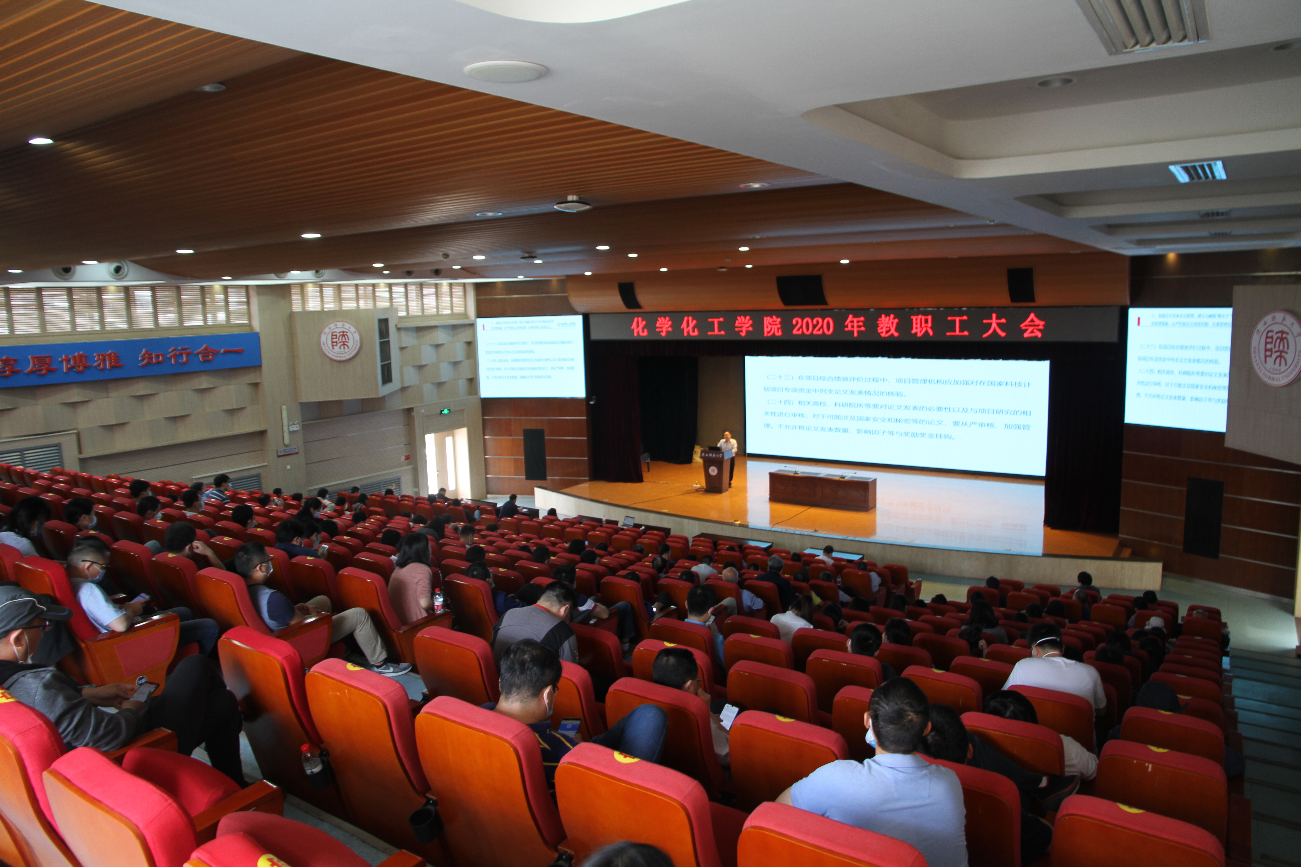 随后学院院长薛东以“不忘初心建学科,砥砺前行谋发展”为题,重点围绕毕业生就业、教学科研、学院发展存在的问题瓶颈、2020年重点工作等方面作了报告。他强调,要正确认识教学和科研的关系,铭记“科研是自己的事,科研评价是别人的事,首先要做好自己的事;教学研究也是研究,未来发展空间巨大,需要大力倡导;人才培养和科研不是矛盾的,需要融合和相互促进”。要树立科学的学术评价治理体系,克服“五唯”顽疾,加快质量导向的学术评价治理体系建设,推行分类评价、促进学术评价机制的不断完善,充分发挥学术评价“导航灯”和“调节器”作用。他指出,当前学院发展主要存在学科特色不强、符合科学研究规律的科研氛围还未形成等方面的问题,下一步工作要把“一流人才培养、一流师资队伍、一流科研氛围、一流科研成果”作为学院发展目标,重点围绕“调结构、强特色、促转型”使劲用力,聚力构建“结构合理、能力突出、特色鲜明、充满活力老中青结合的师资队伍;建立和完善绩效导向的资源使用和考核制度;强化化学基础研究特色和化学教师教育特色;努力实现由传统教学、科研型学院转变为具备服务国家战略和地方社会、经济发展能力的创新性学院。”同时,他还勉励大家要以身做作则,为学院发展、学科建设奉献力量,为实现化学人的一流梦想共同努力。