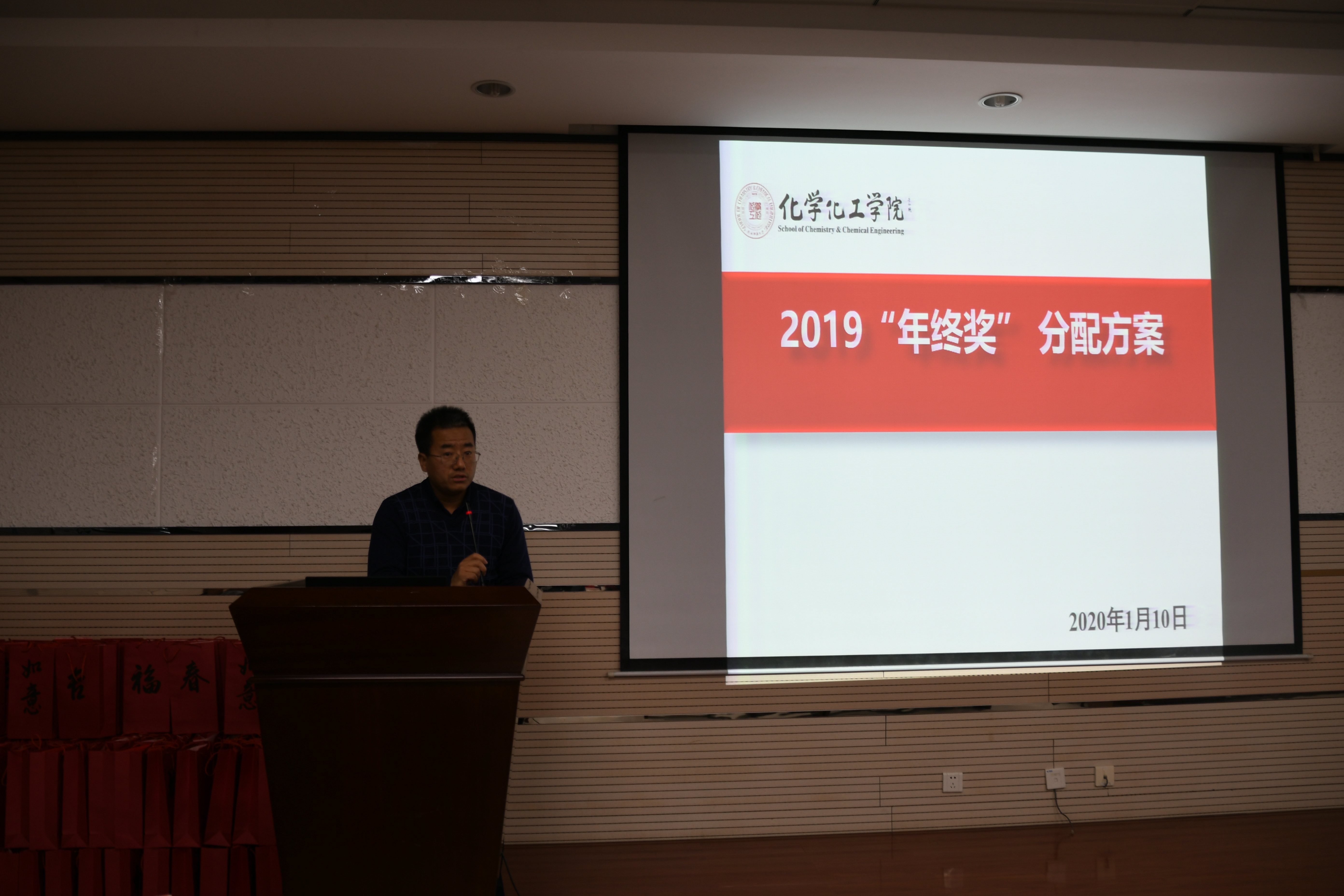 随后,肖新军副院长向全体教职工做了2019年度学院财务公开报告,并将2019“年终奖”分配方案提请大会审议,审议通过后,向全体教职工宣布执行。在会上,他还对近三年学院发展量化指标进行了比对,在肯定成绩的同时,对学院存在的顶层设计需进一步加强、人才建设与学科(平台)建设的资源配置需进一步调整优化,发展理念、手段、方式需不断提升,人才培养过程和质量需进一步提高,学院管理、服务精细化、精准化程度还需提升等问题做了说明,进一步为学院新年度工作指明了方向。