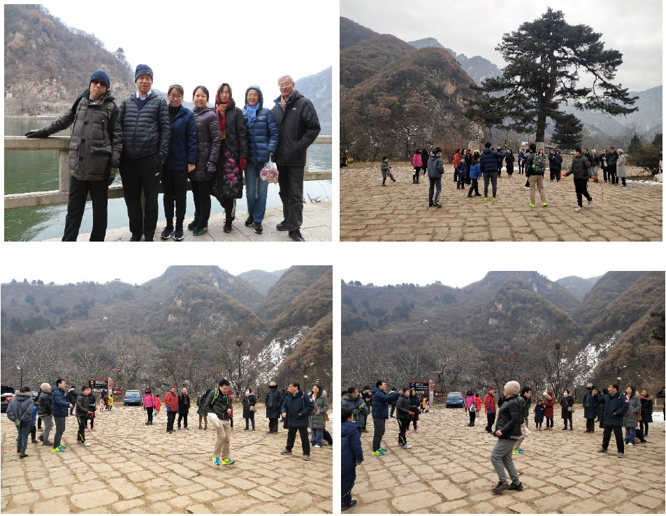 徒步行团队由来自各教研室、大型实验仪器平台及学院行政的老中青教职工及部分家属组成。学院工会提前做好行程安排、活动方案和安全预案相关事宜。早上8点30分,一行60余人在新校区家属区西门集合,乘车出发前往翠华山。冬日的翠华山宁静怡然、白雪朵朵、山泉潺潺,虽然天气寒冷,大家却被眼前的美景深深吸引。合影留念后,党委书记高玲香、工会主席张国防以及工会委员边红涛、黄治炎、张小玲、郭新爱六位老师作为小组安全负责人,组织大家徒步自由行,领略翠华山冬日雪景和冰瀑。在翠华山的迎客松下还组织了跳绳活动,大家玩得开心和快乐。