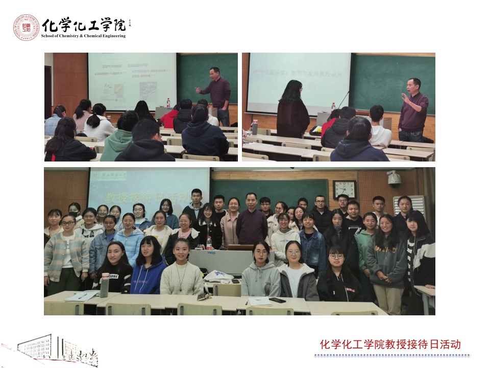11月15日,化学1901班邀请白俊峰教授进行“教授接待日”活动。为拓展同学们的知识体系,白教授以新型功能材料——MOFs(金属有机骨架材料)为例,向同学们介绍化学领域的前沿知识。接着同学们纷纷倾诉入学以来学习生活中遇到的不适和困惑,白教授耐心聆听,答疑解惑,他指出作为新时代青年,一要富有上进心,积极进取;二要富有创新意识,善于提问;三要富有挑战精神,迎难而上。同时鼓励同学们多锻炼、多积累,明确学习方向,清晰人生规划。