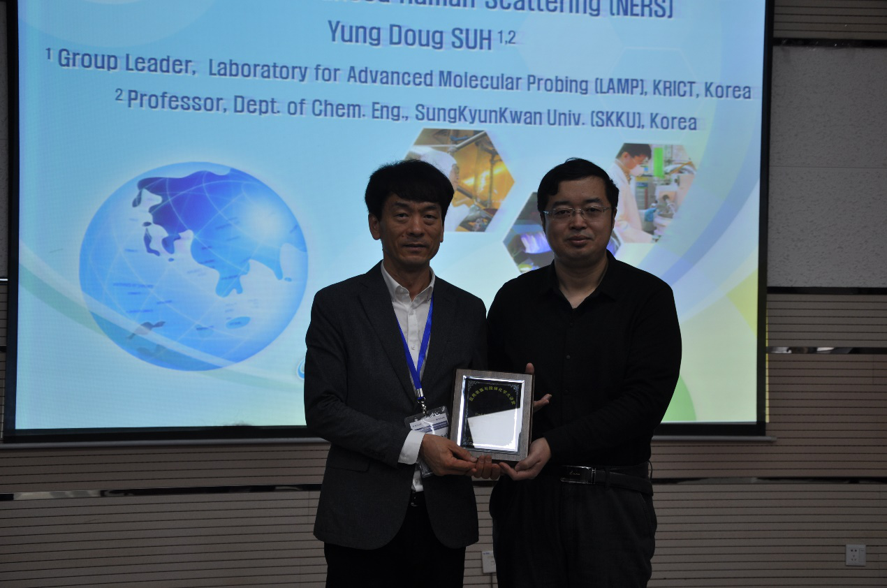 报告结束后,刘成辉教授为Yung Doug Suh教授颁发了应用表面与胶体化学大讲堂纪念奖牌,并向其介绍了捷克论坛