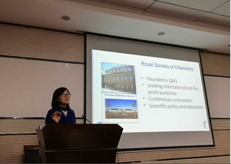其次,宋冠群博士做报告,丁立平教授主持。宋冠群博士围绕英国皇家化学会期刊及出版情况,就出版社成员、期刊种类、影响因子及出版周期进行了详细介绍,针对性地阐述了科技论文的写作策略、与编辑和审稿人高效互动策略及注意事项。此外,宋冠群博士概括性地指出作者在研究论文投稿过程中的常见问题,并给出许多建设性的建议,在缩短文章审稿时间、提高文章录用率等方面极具参考价值。报告结束后,宋冠群博士与现场师生展开深入讨论,并针对部分师生的疑问进行了详细解答。报告内容科学全面、实用性强,在研究论文写作、投稿等方面具有重要的指导作用。
