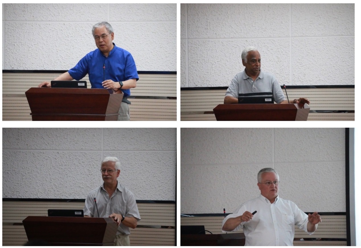 房喻教授、薛东院长、刘成辉副院长、丁立平副院长、以及光子鼻与分子材料团队的各位老师和同学。会议开幕式由丁立平教授主持,薛东院长致词,并预祝此次研讨会圆满成功。接着,房喻教授简短回顾了2011年至今与几位外国教授之间的友谊来往,并且希望此次研讨会能进一步加强国际合作、促进相互之间的交流。