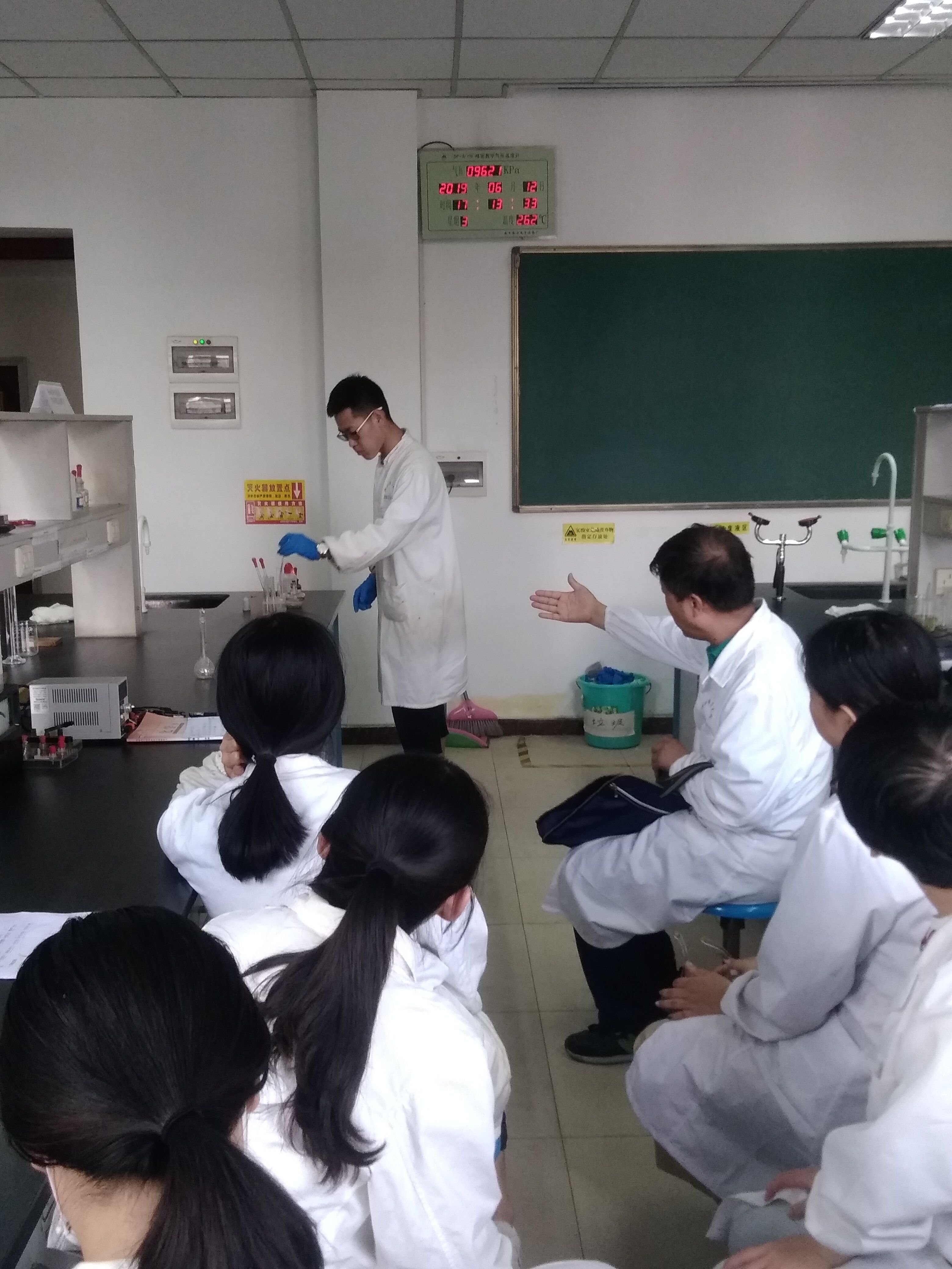 这学期初,同学们每人设计了一个高中化学典型实验,大家积极认真,编写了30个实验,经过杨承印、薛亮、严文法几位老师的审核和修改,确定了11个实验方案。2019年6月11日开始,在我校雁塔校区基础实验中心进行,由杨承印老师组织实验实施、重点实验演示与讲解等环节,指导卓越班同学们进行了几个单元时间的实验训练。