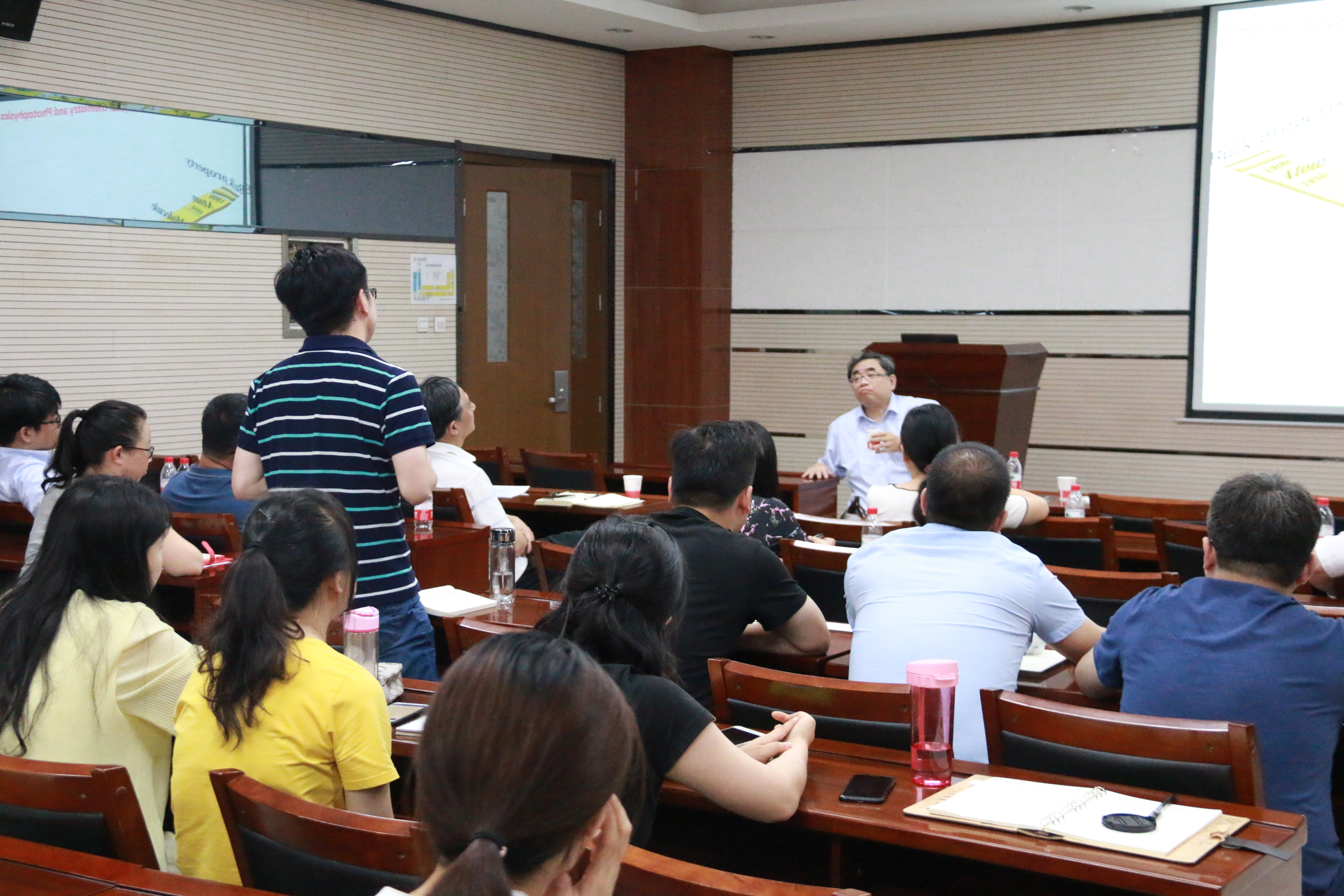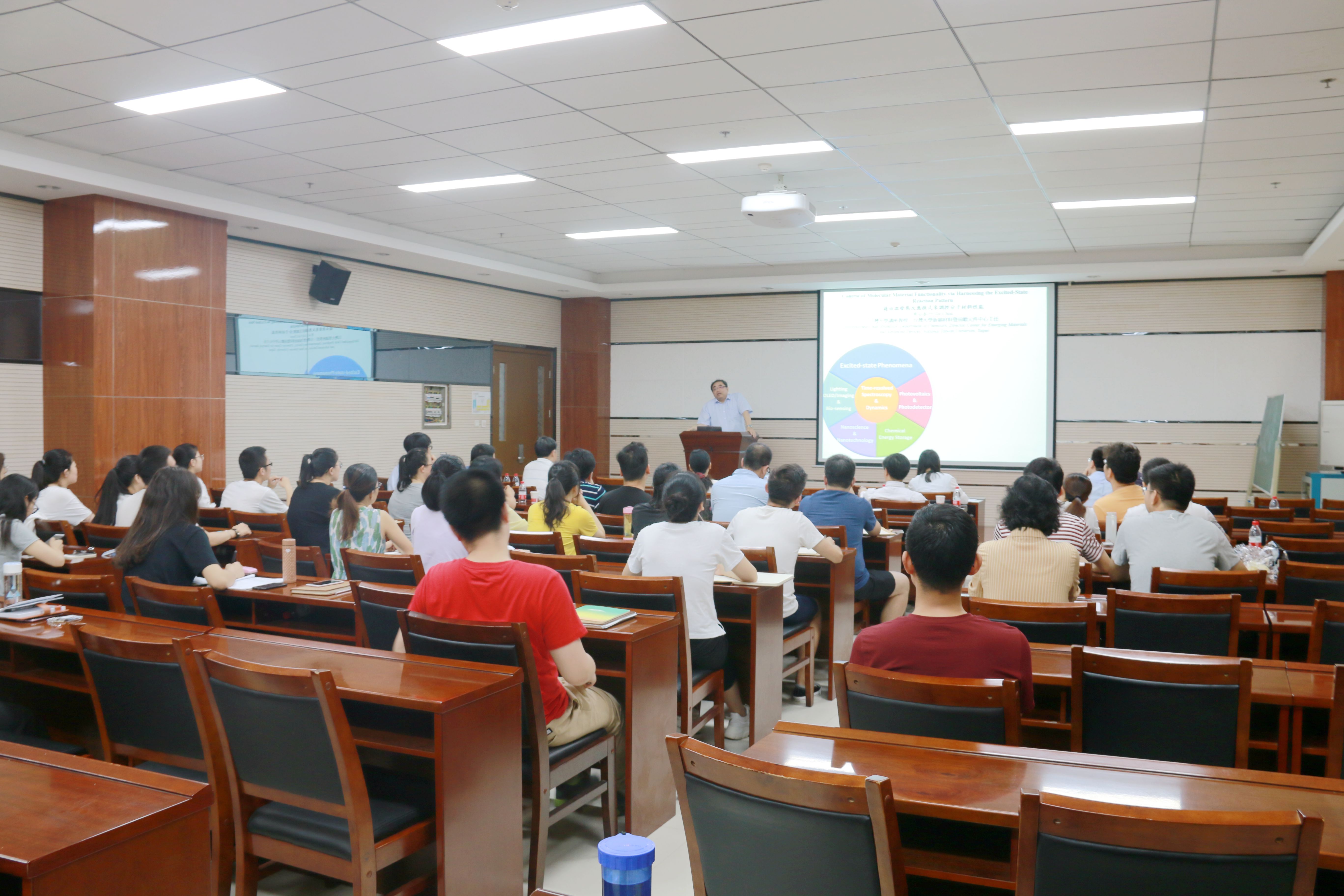 6月20日上午,台湾大学新颖材料暨前瞻元件中心主任,台湾大学杰出教授周必泰应邀访问捷克论坛 ,在致知楼1668报告厅为捷克论坛 师生作了题为“借由激发态反应模式来调控分子材料性能”的报告。捷克论坛 房喻教授、丁立平教授、边红涛教授、尹世伟教授、张成孝教授、刘静副教授、彭军霞副教授、李楠副教授、材料学院胡鉴勇教授及相关专业研究生和本科生聆听报告,报告由房喻教授主持。