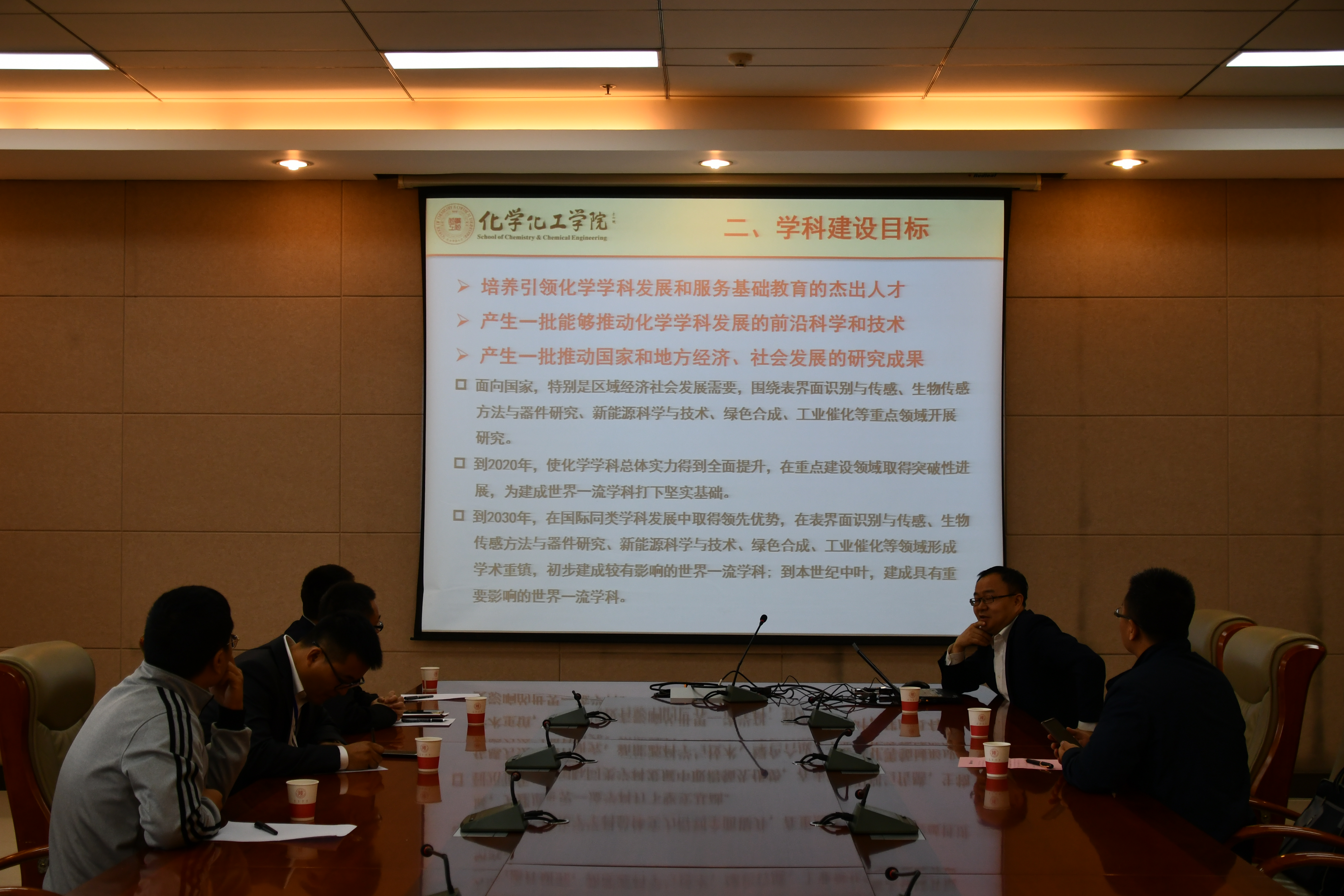 4月16日上午,学院在1568会议室举行了座谈会,薛东院长、王晓副书记、丁立平副院长、肖新军副院长分别从学科发展、学生工作、研究生培养、人事待遇等方面对学院的相关情况做了进一步详细介绍。随后,学院组织青年学者们参观了学院实验室和大型仪器实验中心。