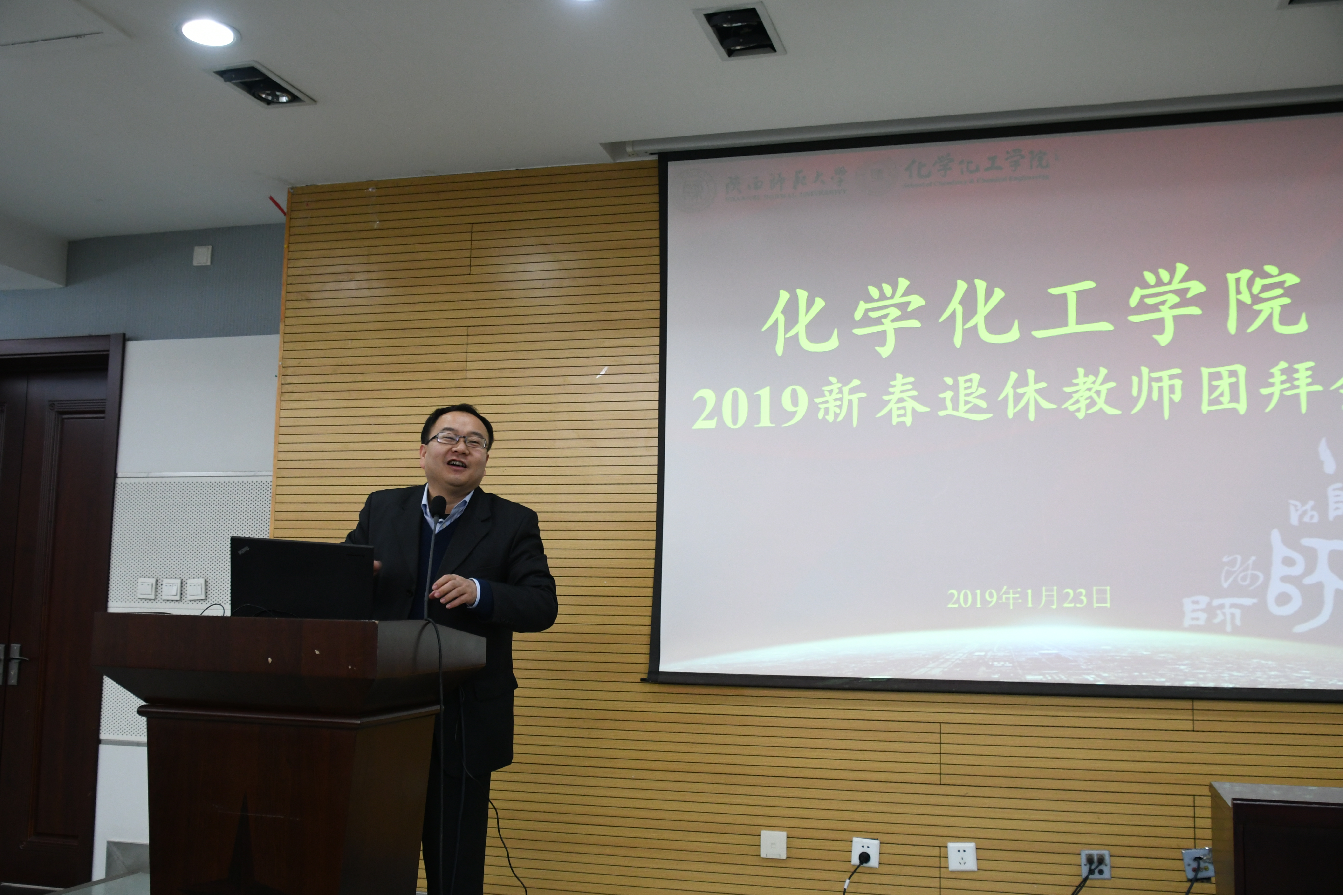 2019年退休教职工新春团拜会在雁塔校区崇鋈楼闻道堂召开,三十多位退休教职工欢聚一堂,其乐融融。学院院长薛东、副院长焦桓、副院长丁立平、副院长肖新军,工会主席张国防,各教工党支部书记、各教学团队负责人、工会委员和办公室主任参加了本次团拜会。团拜会由张国防主持。