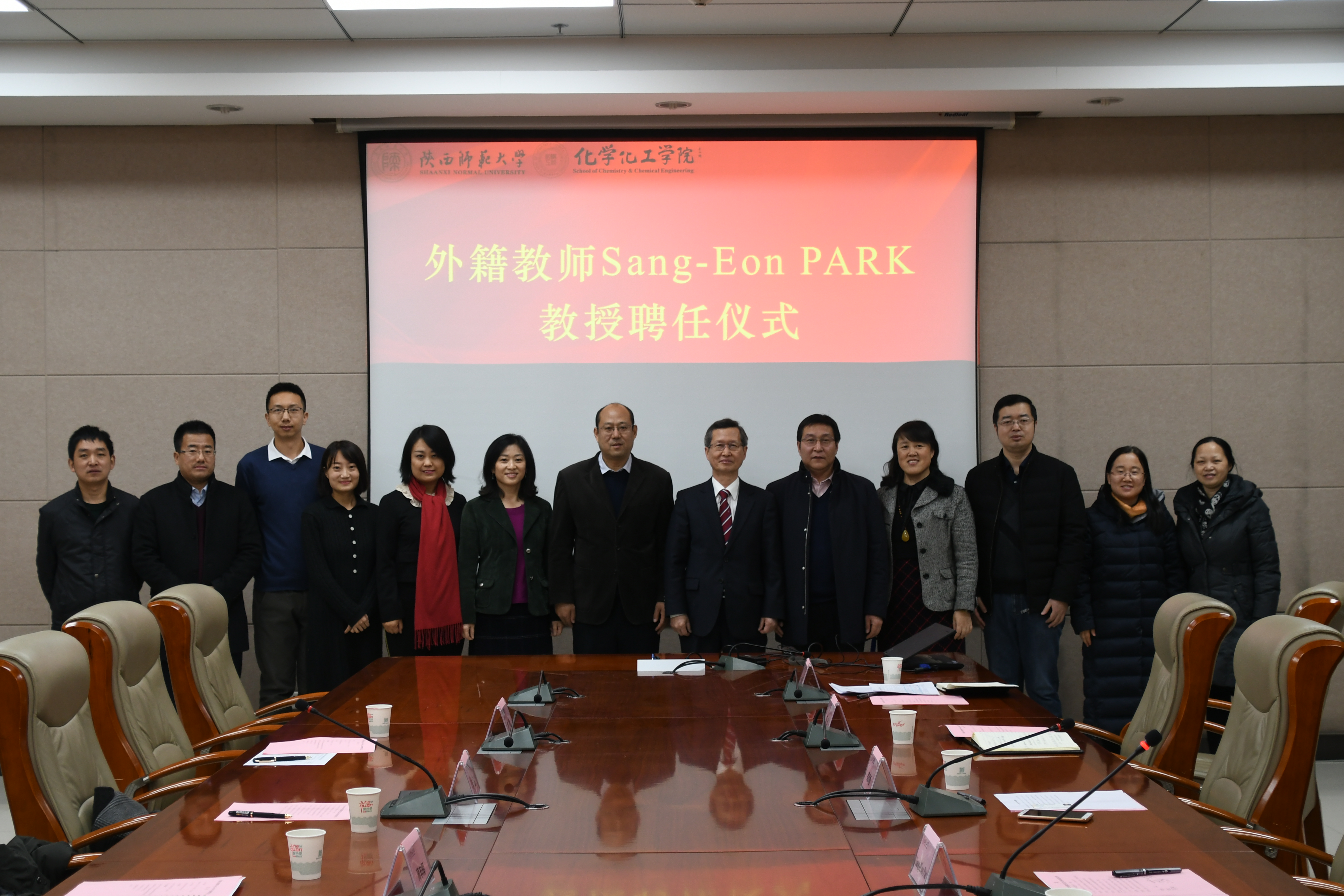 高玲香介绍了Sang-Eon Park教授的教育工作经历、主要学术研究领域、学术成就等情况。李磊代表学校为Sang-Eon Park教授颁发聘书。