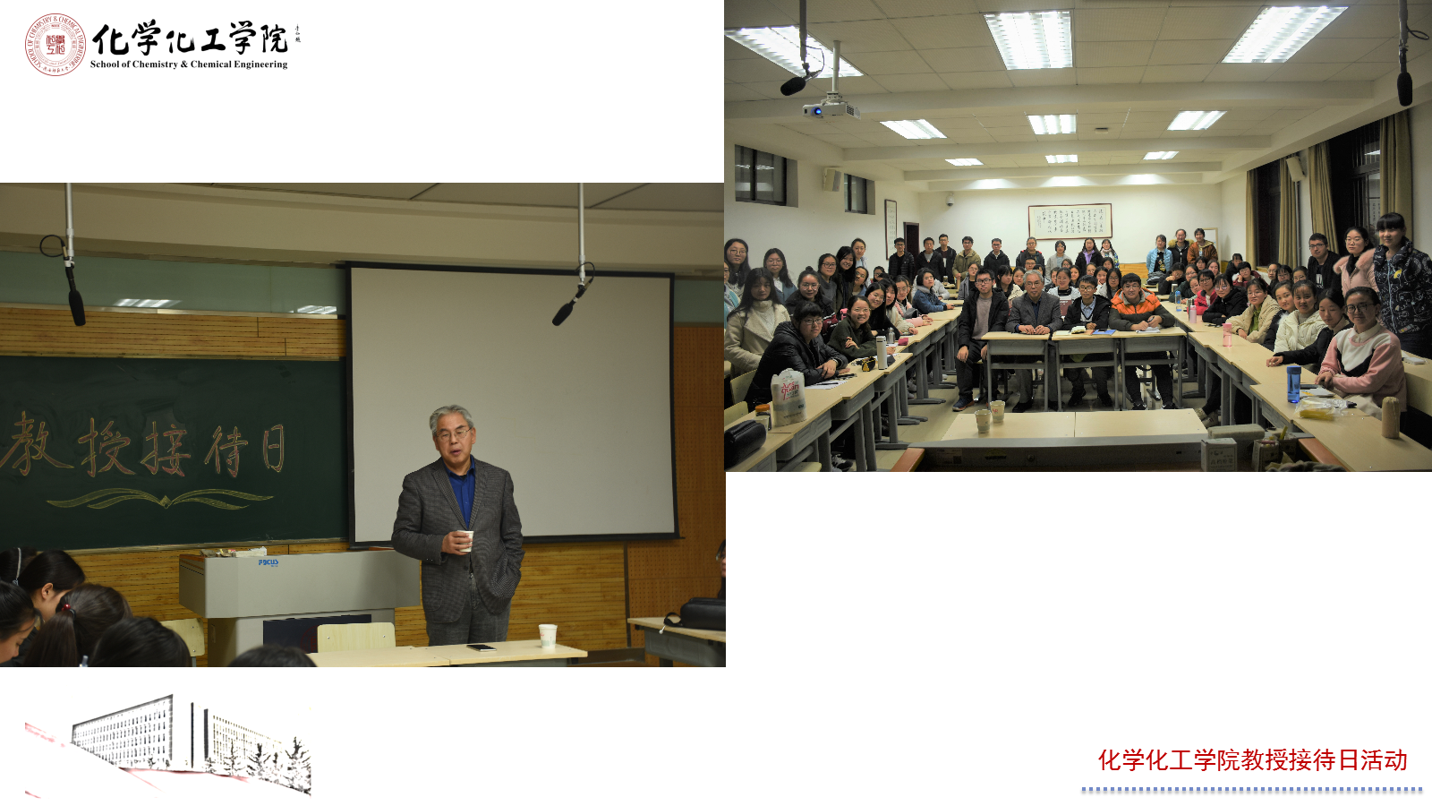 12月14日,房喻教授应邀参加2018级化学卓越1801班以“化学与化学学习”及“化学与师范”为主题的教授接待日活动。房喻教授结合自身学习经历、教育经历、工作经历讲述了自己的人生经验,他鼓励大家,“对于一门学科的学习,一定不能畏惧,态度上要重视,从一开始就要投入并且下好功夫,化学也许不是最重要的,但一定是最不可或缺的。化学学科能够带给人们最核心的部分就是思维习惯上的改变,这是化学学科的价值所在。”
