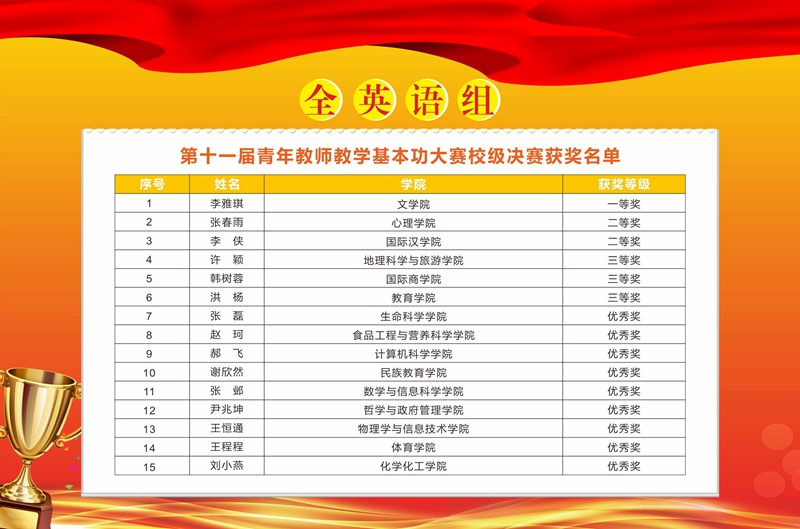 实现一等奖零突破,三位参赛青年教师充分展现了扎实的教学基本功,丰富的专业知识和别具一格的课堂教学风格。