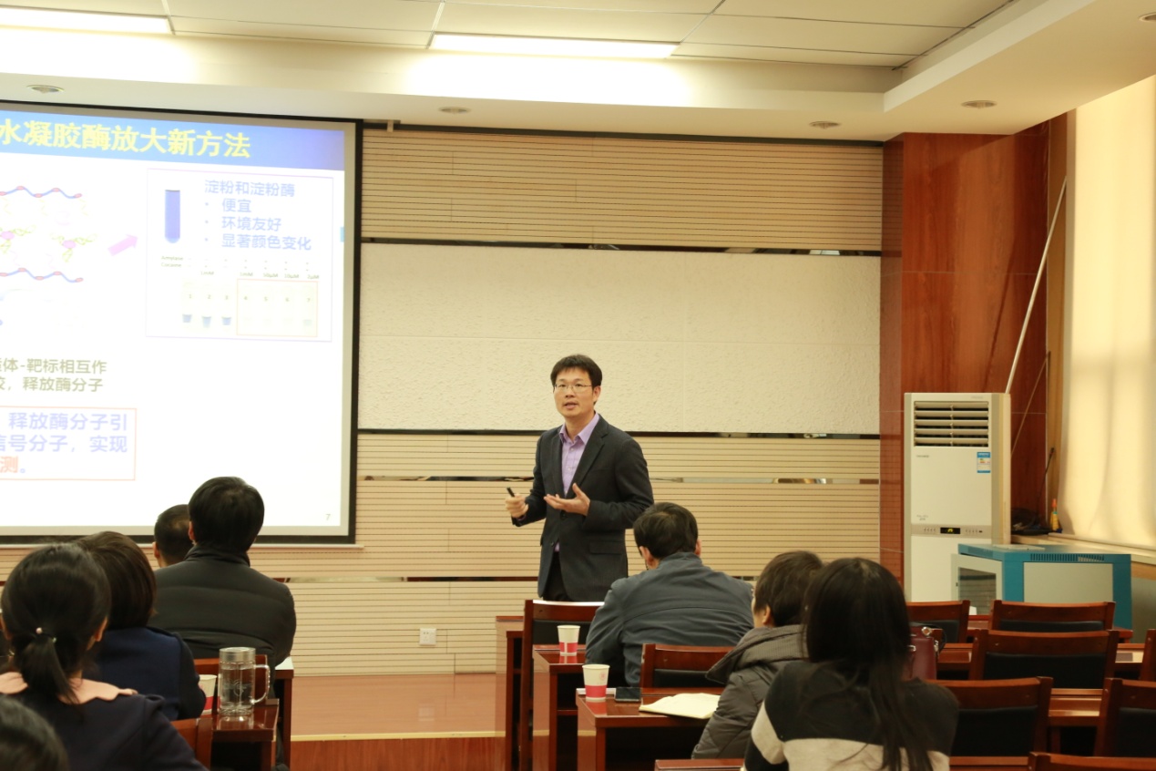 2018年12月8日上午,厦门大学杨朝勇教授应邀前来捷克论坛 交流,在致知楼1668报告厅为捷克论坛 师生作了题为“基于微流控的生物分析新方法”的报告。捷克论坛 张成孝教授、张静教授、金燕教授、唐艳丽教授、漆红兰教授、段新瑞教授、李楠副教授、刘伟副教授、刘晓玲博士等教师及相关专业研究生聆听了报告,报告会由刘成辉教授主持。