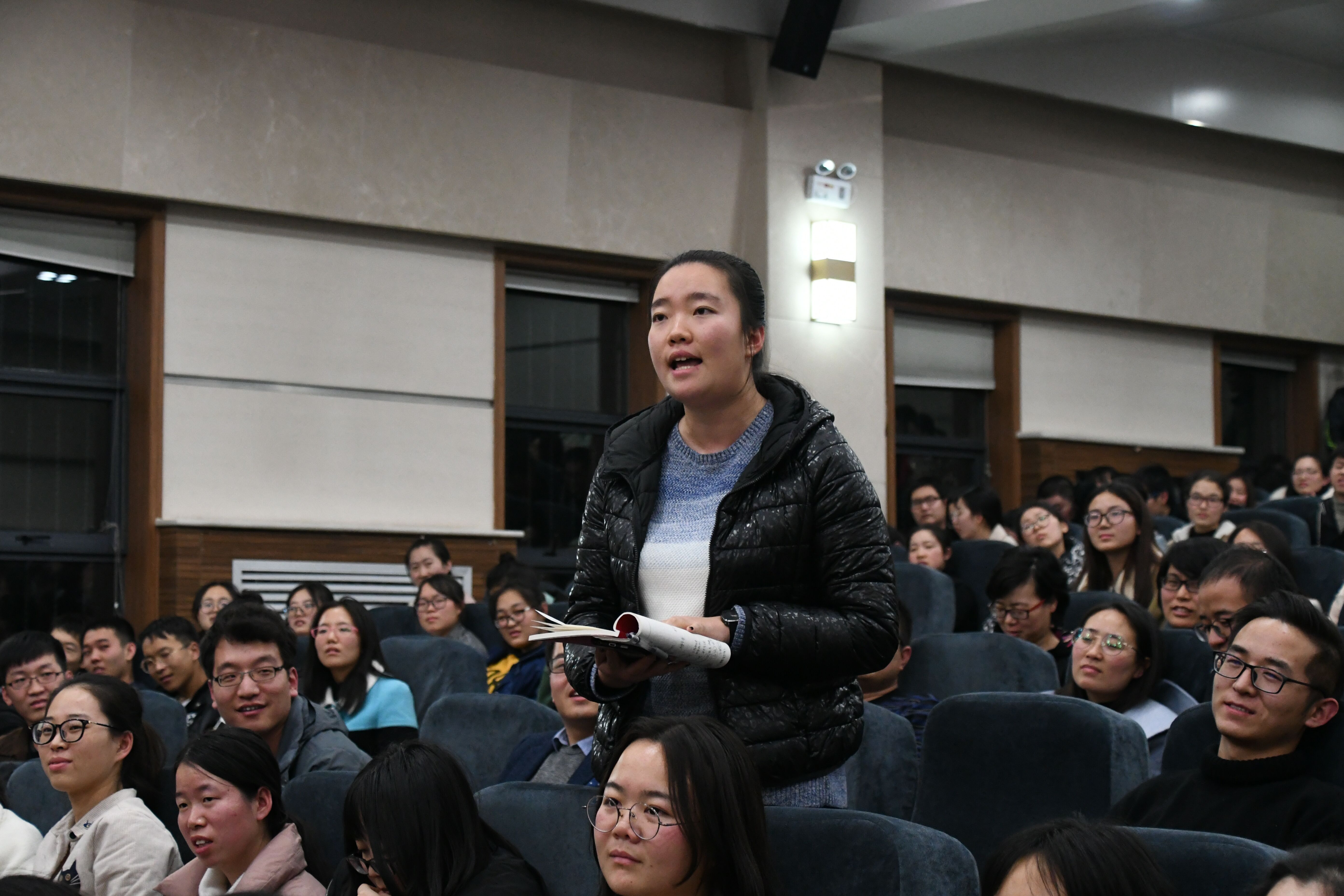 讲座持续了近三个小时,房老师全程站立,这样的精神值得我们敬佩。讲座内容传达出房老师作为教育工作者的无限情怀和责任担当。作为新时代的青年,我们定将谨记房老师的教诲,不断地充实自己,为国家的教育强盛奉上一己之力,培养出更多优秀的社会主义建设者和接班人。