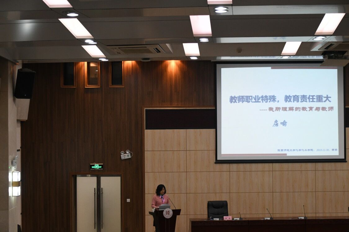 11月30日晚,学院魅力化学文化节之专题讲座在长安校区文澜楼B段一层报告厅开讲。应学院学生会邀请,房喻教授做了题为《教师职业特殊,教育责任重大——我所理解的教育与教师》的专题讲座。讲座由学院党委书记高玲香教授主持。学院党委副书记王晓、副院长肖新军参加了讲座。