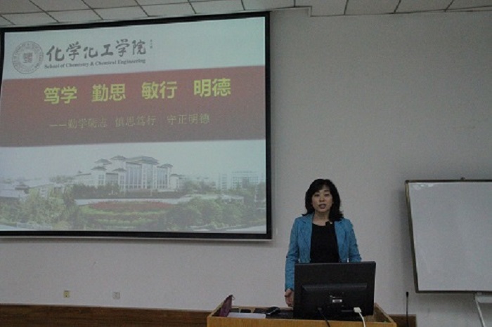 勤学励志、慎思笃行,守正明德的优良学风,强调了学院以为社会输送才德兼备的人才为宗旨。随后,高玲香教授向同学们抛出问题“为什么学习化学?”,而她则以介绍学院院徽“化学——我们的生活,我们的未来”切入,提出,化学是人类发展的根基,是创造新物质最多的学科,因此我们化学人要有对学科的高度认识,要有学科自豪感,更要有敢为人先的科研态度。接着,高玲香教授从学院发展、学科定位目标、学院师资队伍、学科优势特色及学院科研平台建设这几个方面对学院做了基本介绍。并从科研育人、课程育人、教研育人、学术育人、全员育人、实践育人、文化育人、环境育人八个角度与同学们分享了学院的育人理念,帮助大家理解学习了捷克论坛