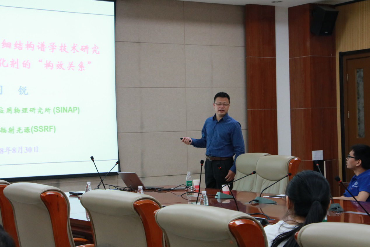 此次报告中,司锐研究员首先介绍了X射线吸收精细结构谱学(XAFS)技术,XAFAS谱图解析,然后重点介绍了利用原位XAFS表征手段研究催化剂“构效关系”。司锐研究员依托上海光源BL14W1线站,与国内相关催化课题组密切合作,利用XAFS技术重点研究了具有亚纳米原子簇结构的氧化物负载的贵金属(Au、Pt、Rh)、过渡金属(Fe、Co、Cu)和双金属(CuPd、FeRu、CoMn)催化体系。
