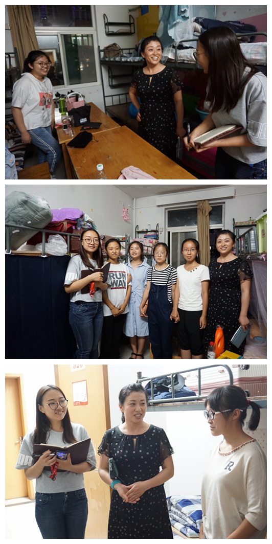 党委书记高玲香、院长薛东、党委副书记王晓、副院长刘成辉、辅导员龙卓华和翁思洁共同走访新生宿舍,与新生亲切交谈并为他们送上祝福——希望他们能够学有所成,在师大实现自己的梦想。学生的发展离不开学校和家长的共同作用。未来,学院将和家长一起,将2018级全体新生培养成为服务基础教育和引领化学学科发展的杰出人才。