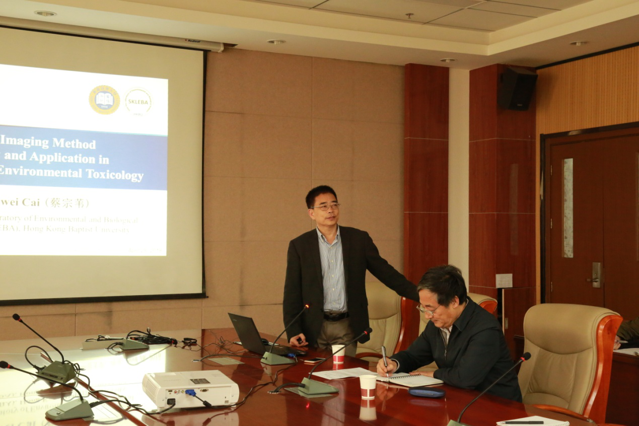 报告中,蔡宗苇教授详细地介绍了其课题组近年来的工作成果,主要围绕用质谱检测PBF对肾、肝、脾等器官病变标志物影响等方面的研究工作展开汇报,其深入浅出的讲解给同学们留下了深刻的印象。报告结束后,蔡老师与在场的老师们进行了热烈讨论,对同学们的积极提问也给与了解答与建议。