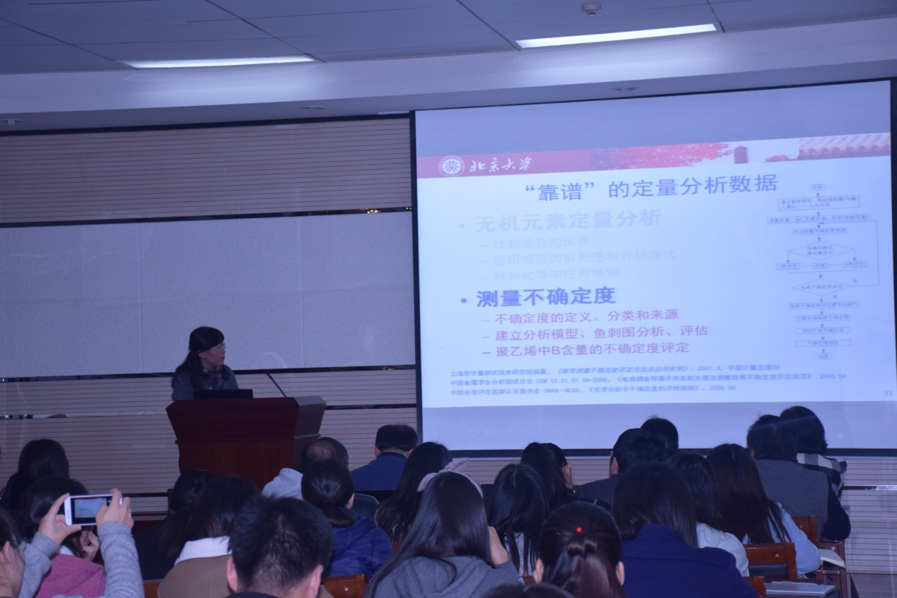 报告中,谢景林教授介绍了XPS的原理、功能、对科学研究的贡献、应用及(准)原位分析,并对光电子能谱技术的完善与发展提出了自己的见解。扶晖博士在报告中介绍了核磁共振原理、液体核磁共振与固体核磁共振及其应用。张莉博士以有趣的题目将大家的注意力引入元素分析的报告中,通过无机元素定量分析、测量不准确度两大部分向大家讲解了如何得到准确度高的数据。鞠晶博士则向大家介绍了扫描电镜的相关知识。周江教授在报告中展示了北京大学分析测试中心的信息化建设,并列举了一系列质谱在最新科研成果中的应用实例。整场报告深入浅出,捷克论坛