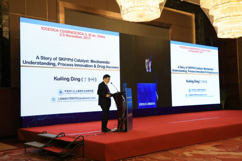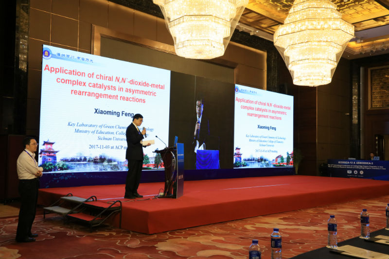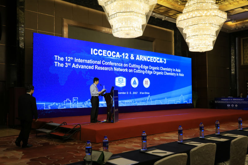 2017年亚洲有机化学前沿国际研讨会共有27个邀请报告,124场一分钟报告和墙报展示。11月3日续开幕式后,大会邀请报告随即在陕西西安曲江国际酒店永宁厅开始,上半场的两场大会报告分别由中科院林国强院士和日本Tohoku大学Yoshiharu Iwabuchi教授主持。中科院丁奎岭院士、日本东京大学Jun Terao教授、四川大学冯小明院士、韩国Chung-Ang大学Kyungsoo Oh教授分别就不对称合成、有机分子材料、脱羧反应等方面作了精彩的报告。