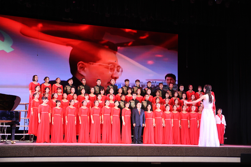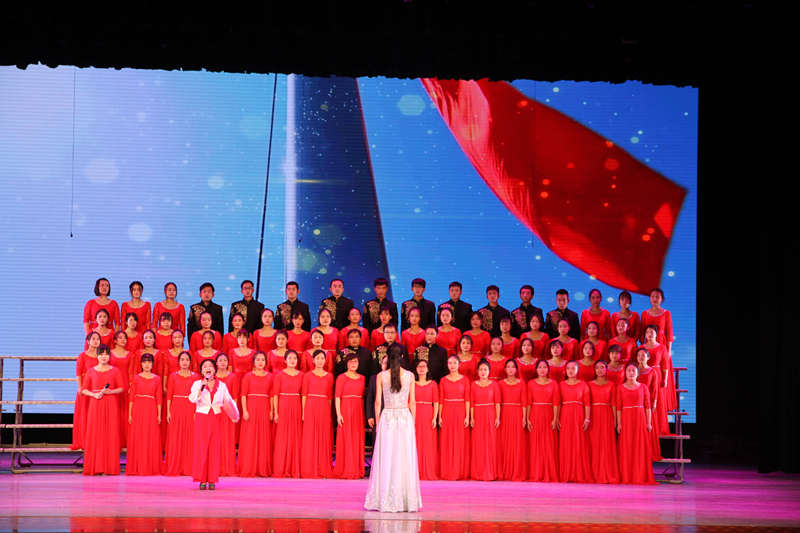 研究生合唱团先后演唱了《我们走在大路上》和《歌唱祖国》两首歌曲,合唱团凭借优雅激情的指挥、大气磅礴的歌声和旋律歌颂了中华民族自强不息的伟大精神、阔步向前的豪迈气概,唱出了新时代青年对党、对祖国、对社会主义的浓厚深情和热情讴歌,歌声催人奋进,气势振奋人心。王红艳老师原创并朗诵的诗歌《祖国》,气势磅礴、激情昂扬,在现场博得阵阵掌声,让我们的合唱团大放异彩。