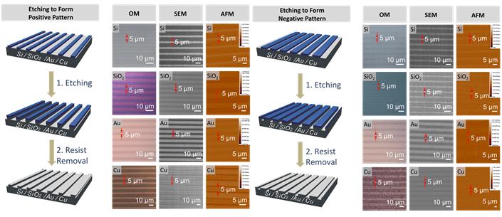 图3 鸡蛋清光刻胶在金属半导体刻蚀方面的应用