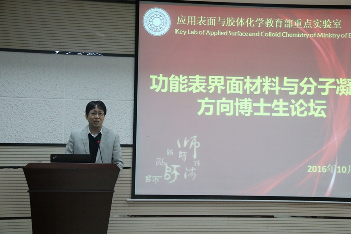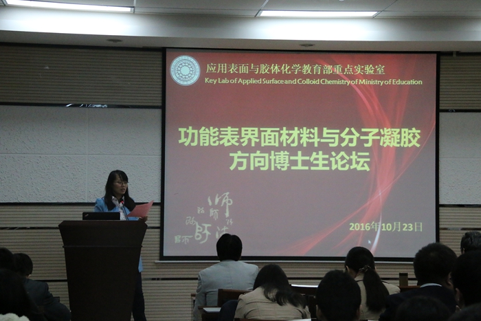 2016年10月23日下午,由应用表面与胶体化学教育部重点实验室主办的“功能表界面材料与分子凝胶方向博士生论坛”在致知楼六层报告厅顺利举行。捷克论坛