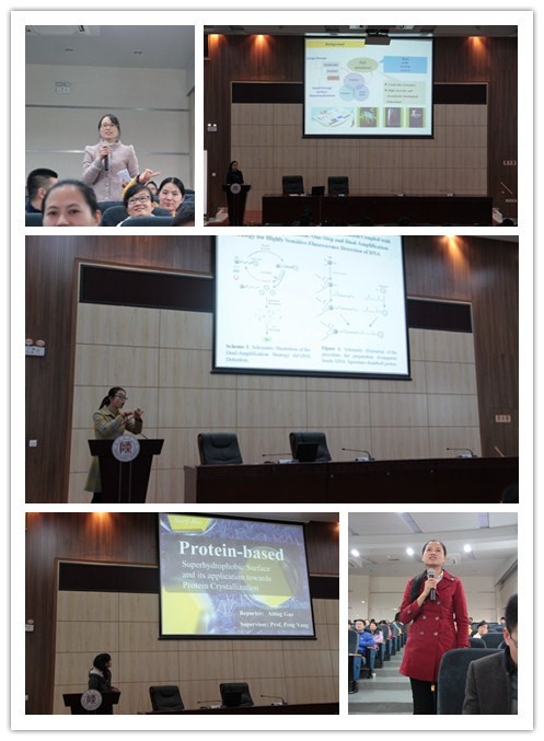 论坛第二部分由学院推荐的2015年国家奖学金候选研究生进行了学术报告,展示他们研究生期间的科研成果,会场上气氛热烈,同学们积极参与提问,获得了非常有效的互动。丁立平老师、李楠老师和赵娜老师分别对优秀墙报一等奖12名,二等奖13名的同学进行颁奖。最后,焦桓副院长对本次论坛进行总结,焦老师指出李前树教授的报告从宏观的角度谈知识、谈科研,对大家的一生都会有所帮助;并对硕士研究生的研究工作和对学院的贡献予以肯定,希望同学们对在师大的求学生涯留下深刻印象。