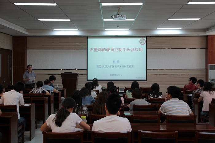 师生作了一场题为“石墨烯的表面控制生长及应用”的精彩报告。报告会由魏俊发教授主持,焦桓教授、张颖教授、唐艳丽教授、张静教授、蔡雪刁副教授等及相关专业研究生、本科生聆听了报告。