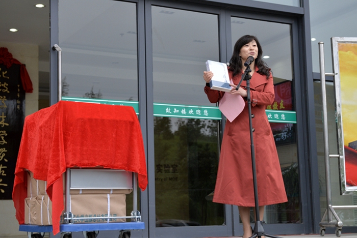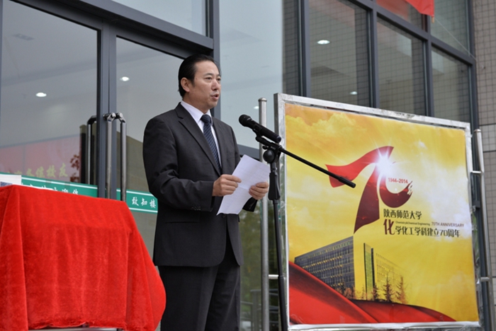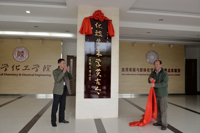 77级校友、原化学系80级学生辅导员、原化学与材料科学学院党总支书记白剑利代表80级校友向学院敬献了题写“化被草木,学贯古今”的牌匾,表达了校友们对母院的感恩之情与美好祝愿。80级校友符同权、贾天牛共同为牌匾揭幕。