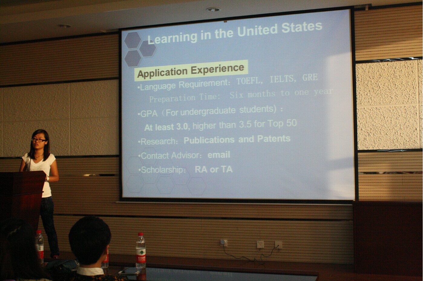报告结束后,同学们积极交流,对于自己面临的学校选择、出国时间、学习安排和奖学金申请等诸多困惑提出了问题,刘幸蕾认真耐心的给予了解答,场面气氛非常热烈。