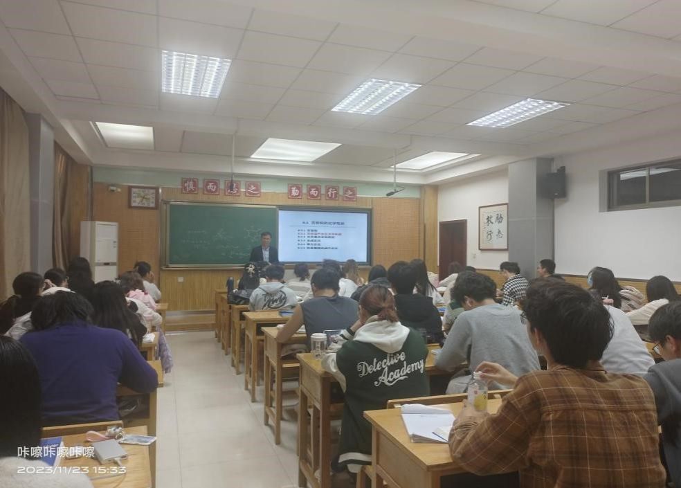 11月14日,化卓2301班在雁塔校区教学五楼5203教室举办了“教授接待日”活动,张尊听教授应邀参加。他从“化学学科简介”“实验在化学教与学中的作用”“拓展性化学实验”三个方面入手,提醒同学们要注重师德师风、厚植爱生情怀、提升综合素养,对同学们如何成为一名优秀教师提出了切实的要求和建议。他嘱咐同学们保持学习劲头,不负青春,不负卓越,不负人民。