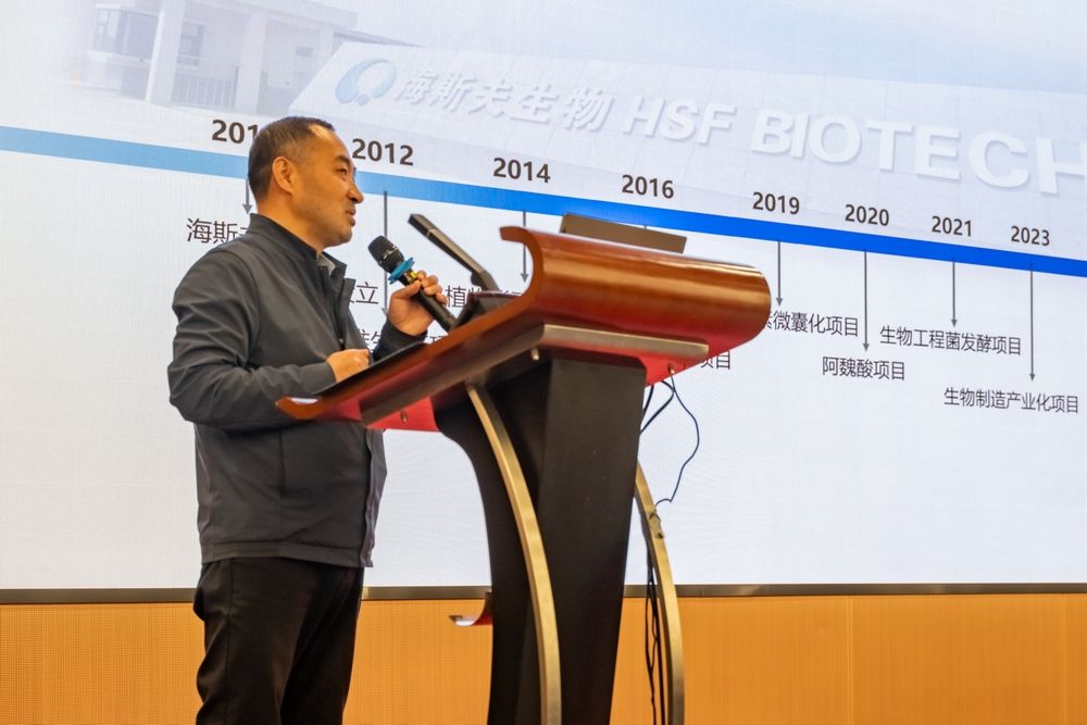 食品工程与营养科学学院副院长、西部果品资源高值利用(教育部)工程中心副主任、海斯夫技术总监孟永宏教授为大家介绍、讲解了海斯夫的产品特点、生产设备、生产工艺及经营情况。