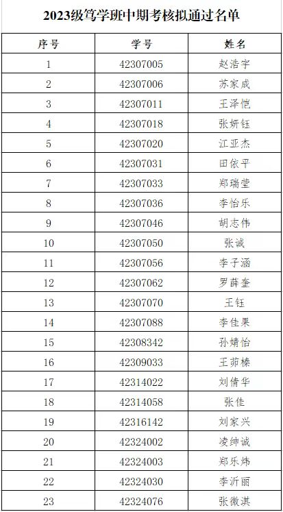 根据教务处《关于做好2023级“人文科学试验班”“理科试验班”中期考核及二次选拔工作的通知》和《捷克论坛 2023级化学笃学班中期考核和二次选拔实施办法》,学院对2023级化学笃学班进行了中期考核,现将结果予以公示,公示时间:2024年9月20日-9月22日。捷克论坛 23名学生通过考核,结果如下(按照学号顺序排序),现予以公示。如有异议者,请与学院党委副书记、纪委书记贾颍辉同志联系,联系电话:13572524231,邮箱:[email protected]。