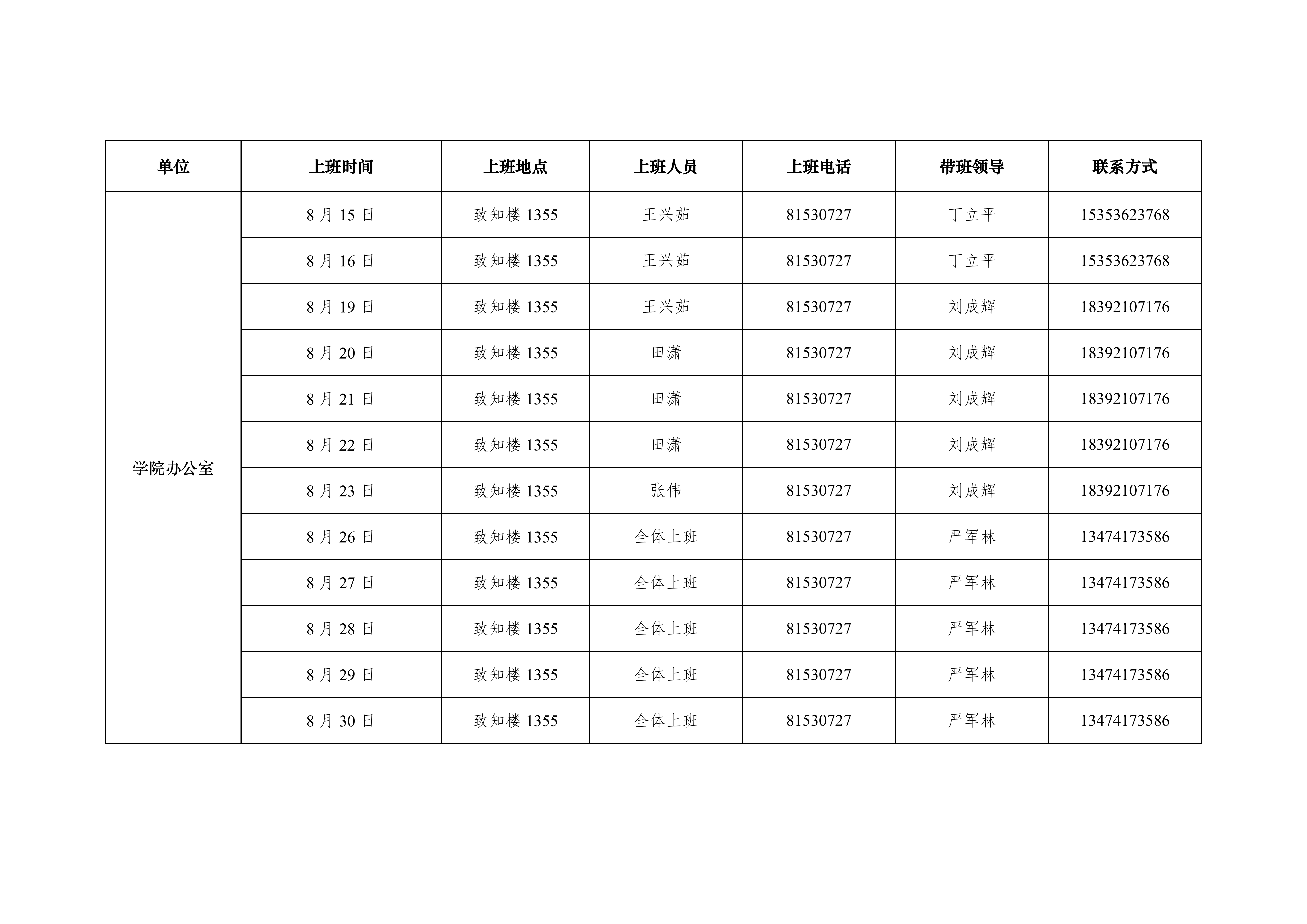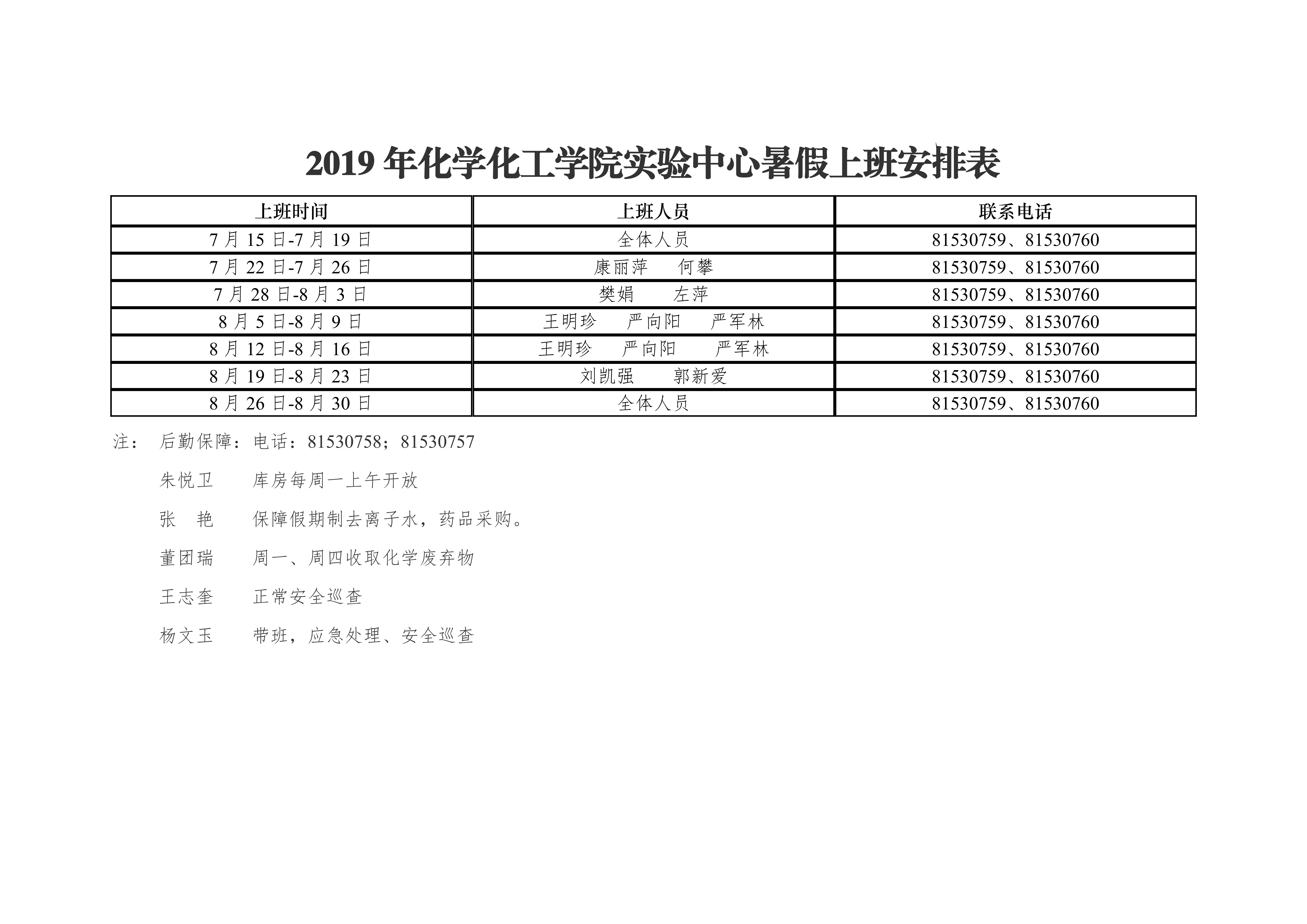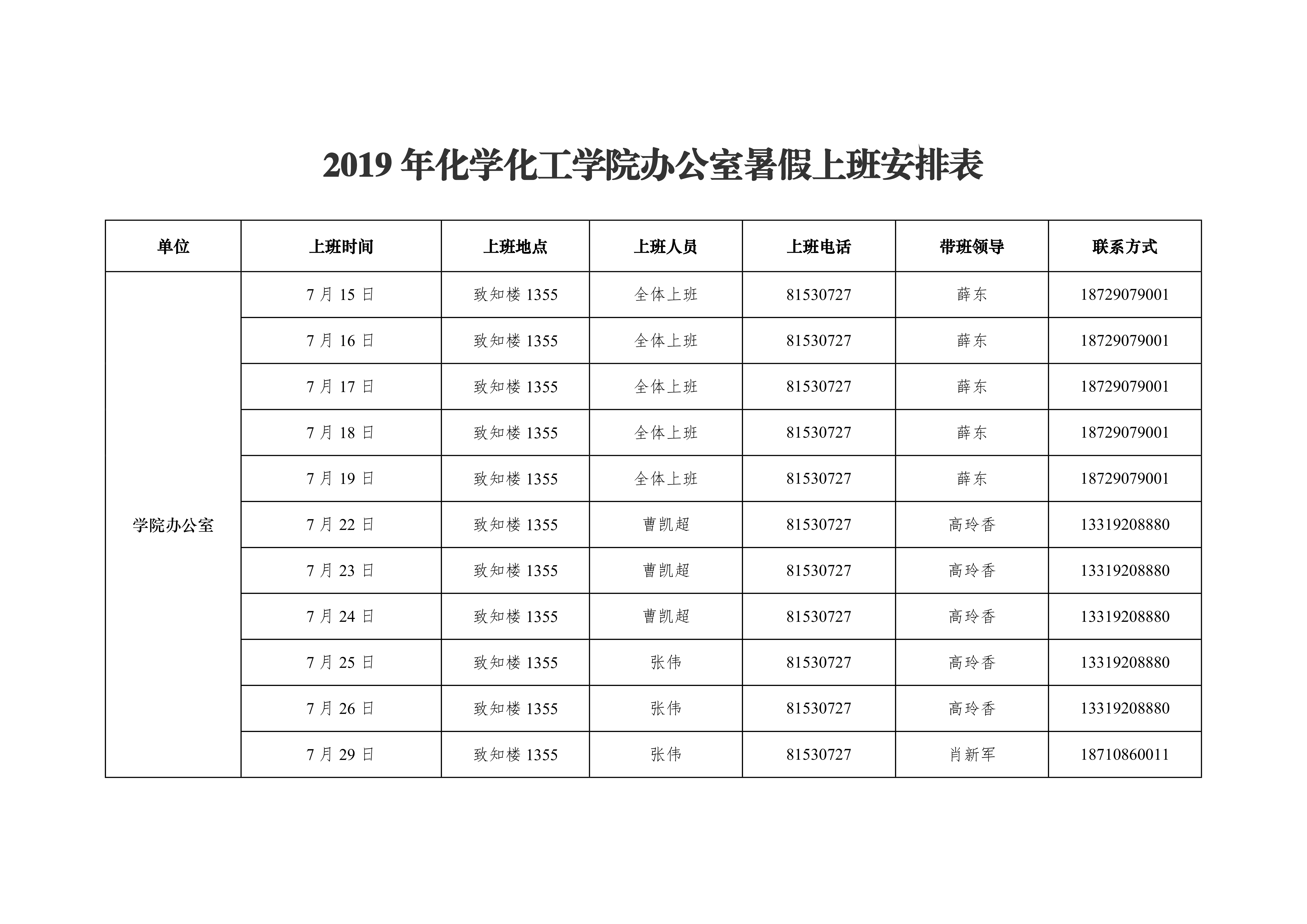 2019年捷克论坛 办公室暑假上班安排表