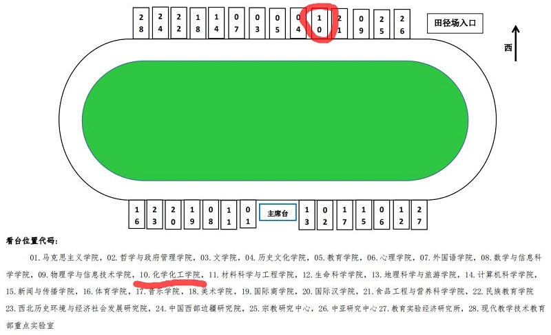 结合学校安排和学院实际情况,现要求全体研究生要以饱满热情积极参与运动会。请没有运动会项目的一年级研究生于8:00前按照看台位置分布图在学院指定就座并观看运动会。