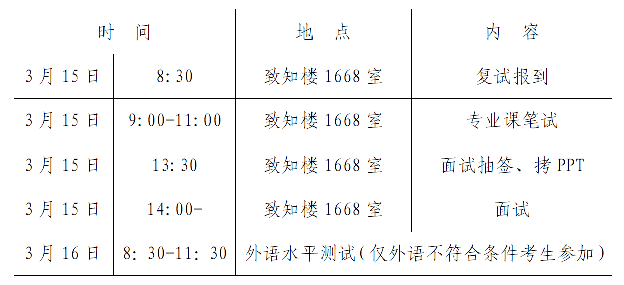 二、 复试时间地点