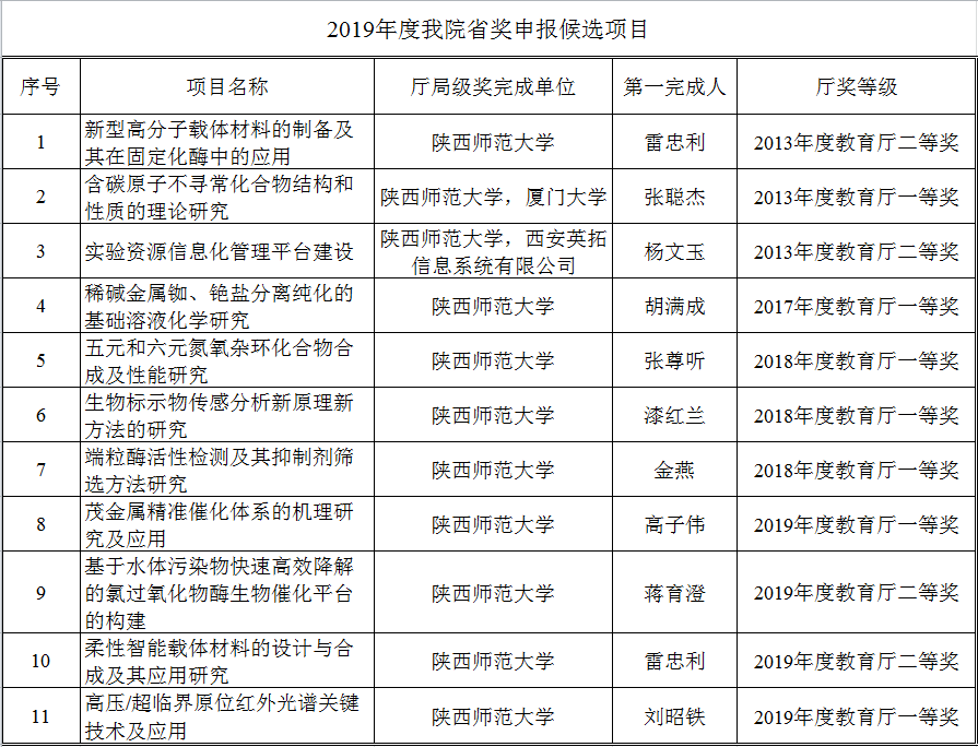 接科技处通知,2019年度陕西省科学技术奖即将开始申报,以下列表中曾获得教育厅二等奖以上级别的项目,可以申报2019年度陕西省科学技术奖。