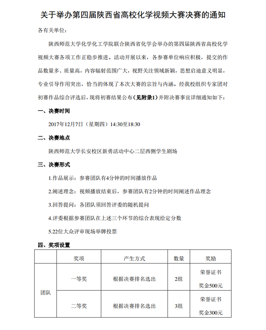 关于举办第四届陕西省高校化学视频大赛决赛的通知